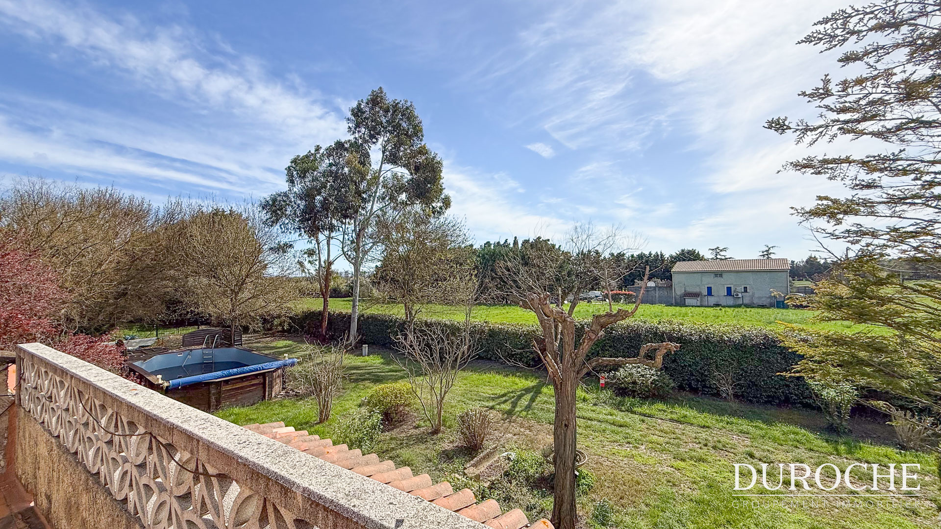 À l'extérieur, la propriété offre plusieurs espaces pour profiter pleinement de la parcelle : une terrasse couverte de près de 15 m2, une seconde terrasse d'environ 17 m2 ainsi qu'une véranda.
