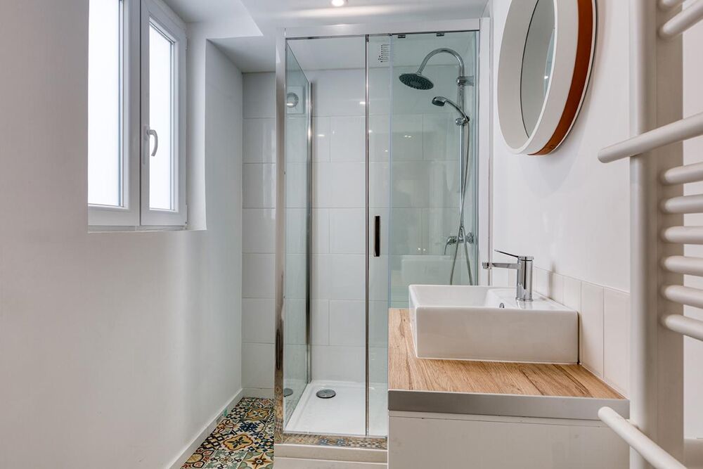 Une entrée avec wc invité, un séjour d'environ 26m² avec une cuisine ouverte super-équipée donnant accès au jardin, une chambre avec salle de douche attenante.