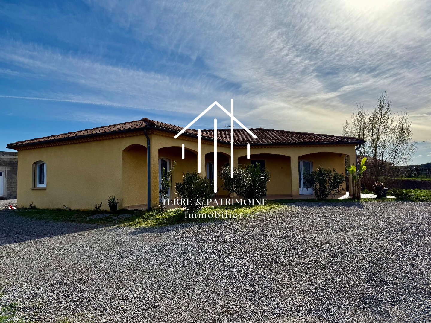 Cette villa contemporaine de plain-pied, d'une surface d'environ 120 m², est implantée sur un terrain plat de 4 300 m² offrant une vue dégagée.Elle comprend une pièce de vie spacieuse et moderne de 65 m², deux grandes chambres (14 m² et 18 m²), une salle d'eau lumineuse, ainsi qu'un garage attenant de 25 m² pouvant être aménagé en une troisième chambre (autorisation d'urbanisme déjà validée) portant la surface à 147m².