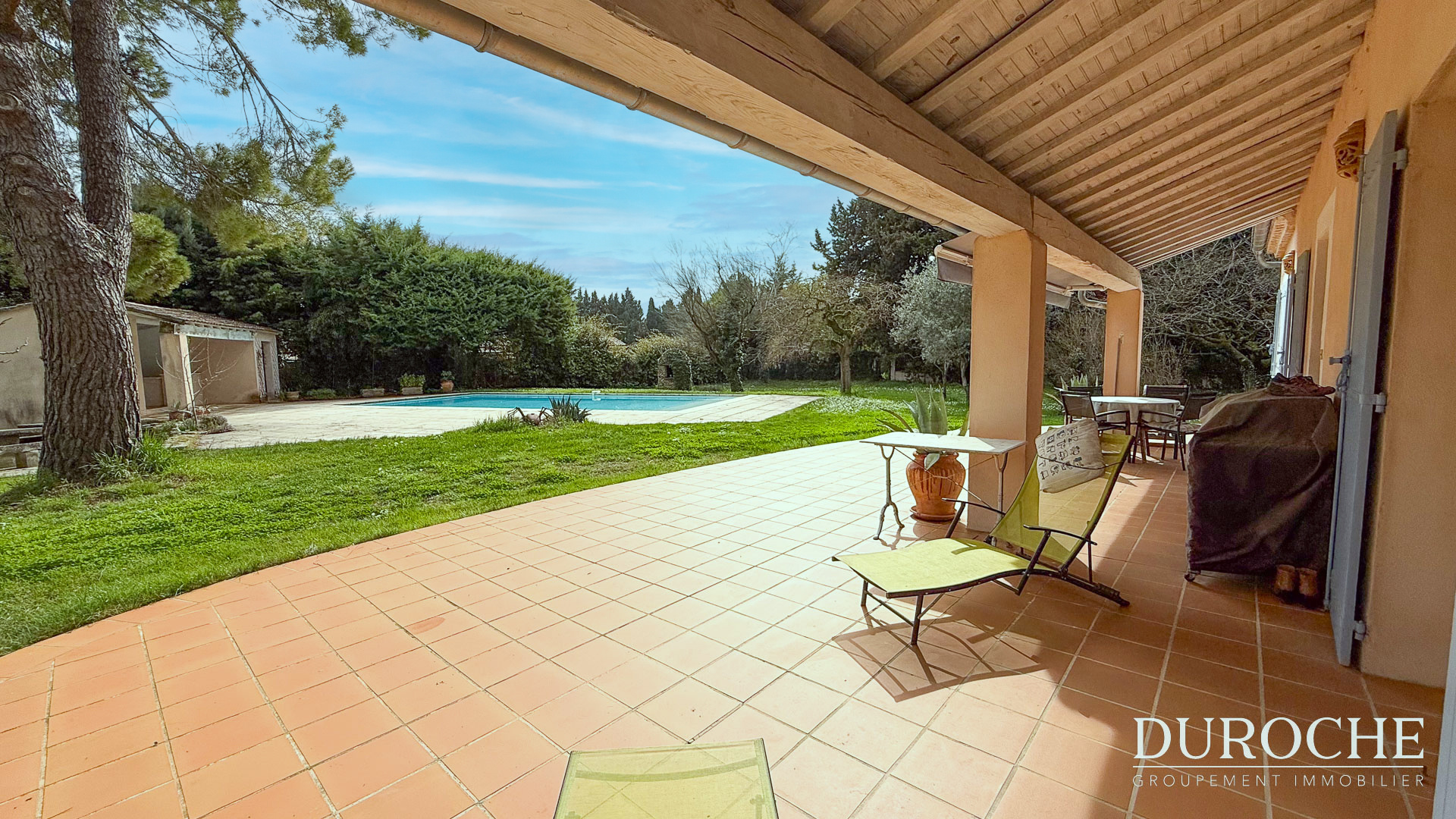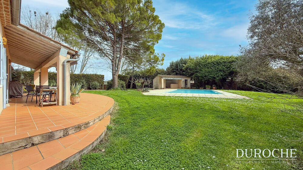 À l'extérieur, le terrain constitue un véritable point fort de la propriété. Joliment arboré avec différentes essences comme chênes truffiers, pins et cerisiers, il propose plusieurs espaces de détente. Une grande terrasse exposée plein sud, en partie couverte avec store banne, permet de profiter pleinement des beaux jours. L'espace piscine est particulièrement agréable avec une grande piscine de 6 x 12 mètres avec plage de 1m. Un pool house avec cuisine d'été, salle d'eau et WC ainsi qu'un espace apéritif complètent cet ensemble convivial.