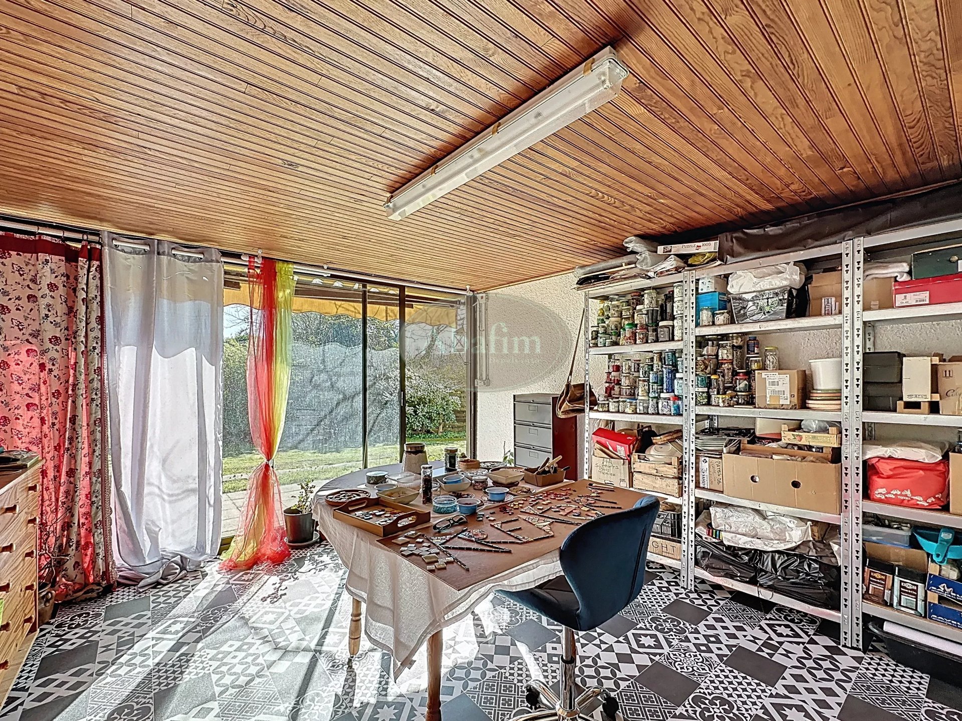 A l'extérieur, après une terrasse ensoleillée de 15 m², vous trouverez une dépendance de 33 m² séparée en deux parties: un atelier aménagé avec un grande baie vitrée d'une surface de 15 m², idéal pour les professions libérales ou les artistes et une remise de 18,4 m², le tout donnant sur le jardin.