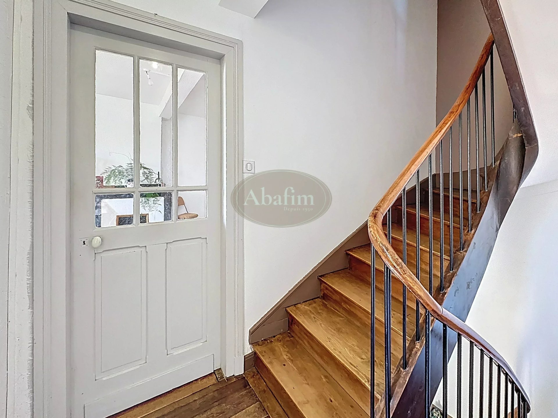 En grimpant l'escalier souligné de sa magnifique rampe en ormeau et fer forgé, vous arriverez au premier étage.