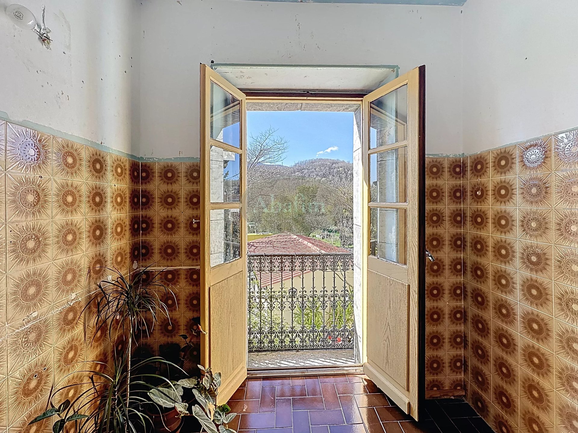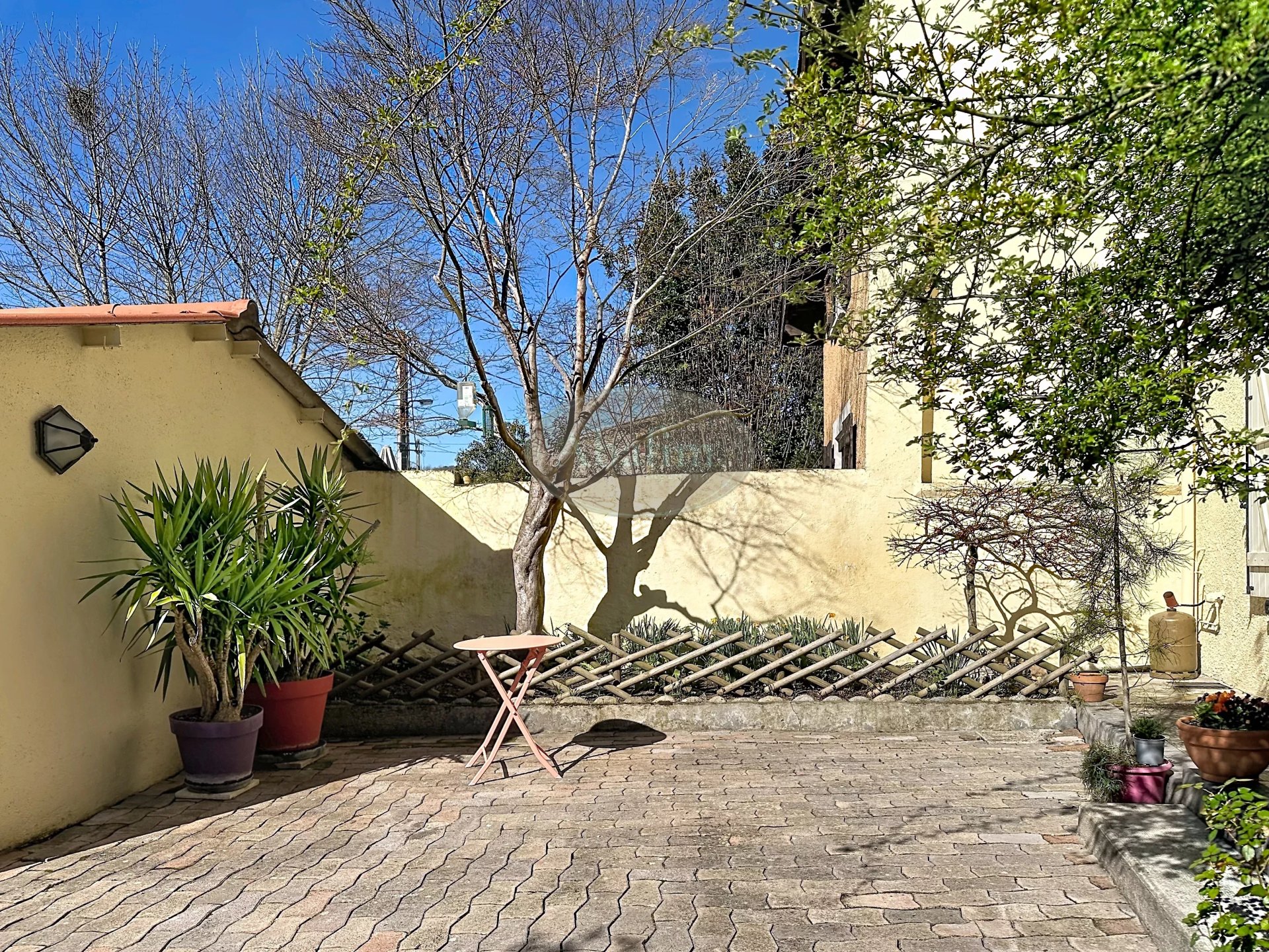 La façade plein sud ornée de ses ferronneries aux balcons et ses fenêtres en chien-assis du grenier a su garder le charme et le caractère authentique de l'ancien.