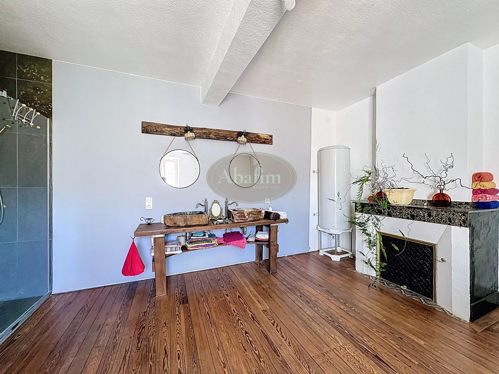 Le chauffage est assuré par une chaudière à bois et la production d´eau chaude est électrique.