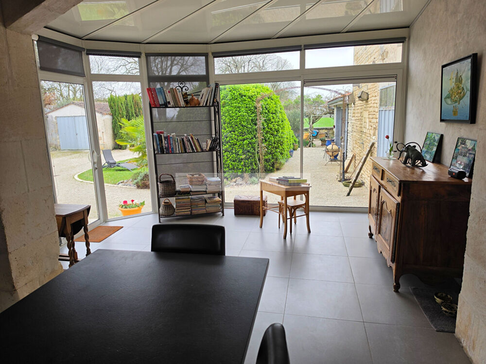 ROUILLAC : Superbe Maison charentaise 294 m² comprenant une partie rénovée avec 3 chambres, une très belle cuisine équipée aménagée, une salle à manger avec cheminée insert et un salon puis l'autre moitié du domaine est à rafraîchir. Garage et nombreuses dépendances vous y attendent sur un jardin arboré 4 000 m². Classe énergie : D 183 / D 37 (référence 1529) (5.00 % honoraires TTC à la charge de l'acquéreur.)Etat général : Bon Etat