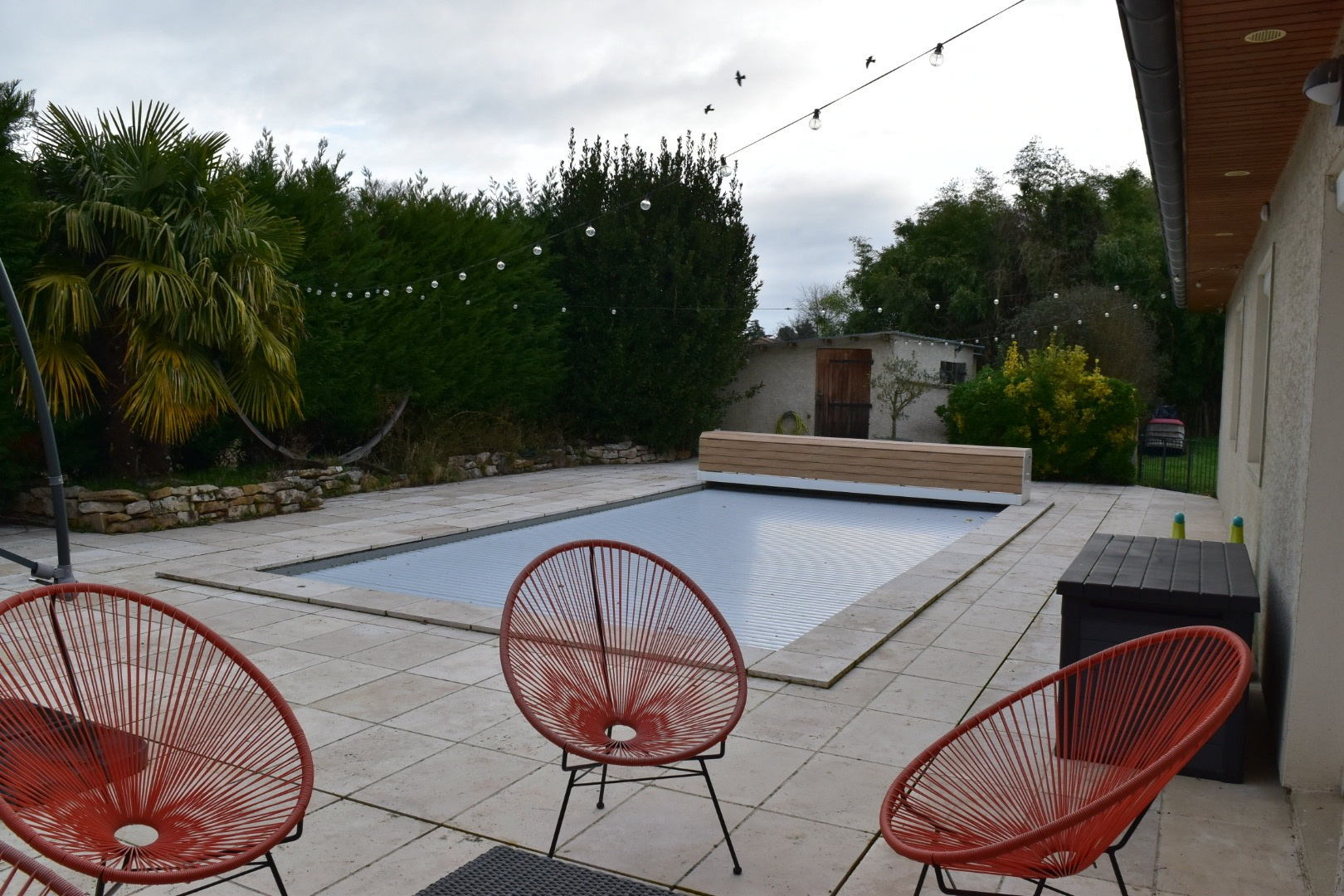 prestations annexes: double terrasse (double orientation sud / est), piscine 4x8, une dépendance de 50 m2 environ, chauffage PAC climatisation réversible, tout à l'égout, double vitrage, alarme, interphone / vidéophone, fibre.