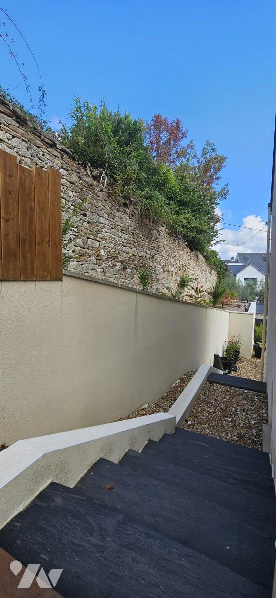Rez-de-chaussée semi enterré donnant côté rue : Actuellement configuré en salle de sport avec sauna, Salle d'eau et Wc séparé. Cet espace est polyvalent, il peut devenir un studio indépendant, un bureau pour professions libérales, ou un espace détente). Un atelier/garage pour motos et vélos complète ce niveau. Niveau rez-de-jardin : une belle pièce de vie d'environ 47 m² agrémentée d'un poêle à granulés, une cuisine aménagée et équipée, prolongée par une arrière-cuisine/buanderie avec lave-linge et sèche-linge laissés à disposition, et des wc. Les baies vitrées ouvrent directement sur la terrasse plein sud.Dernier étage : trois chambres avec placards, une salle d'eau entièrement rénovée, ainsi qu'un WC séparé.Enfin, l'emplacement est un atout majeur : à seulement 200m du Cinéville, 800 m de la place Terre aux Ducs et à 1 km de la cathédrale, accessibles par des chemins calmes et sécurisés. Tous les avantages du centre-ville sont réunis, sans les nuisances sonores.