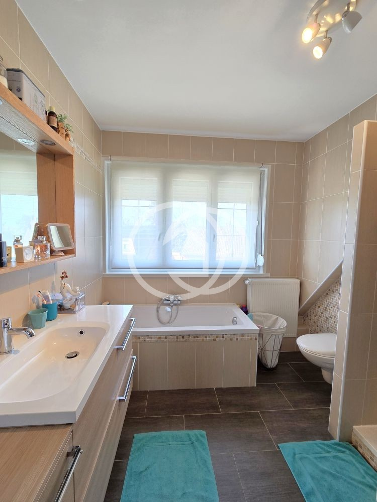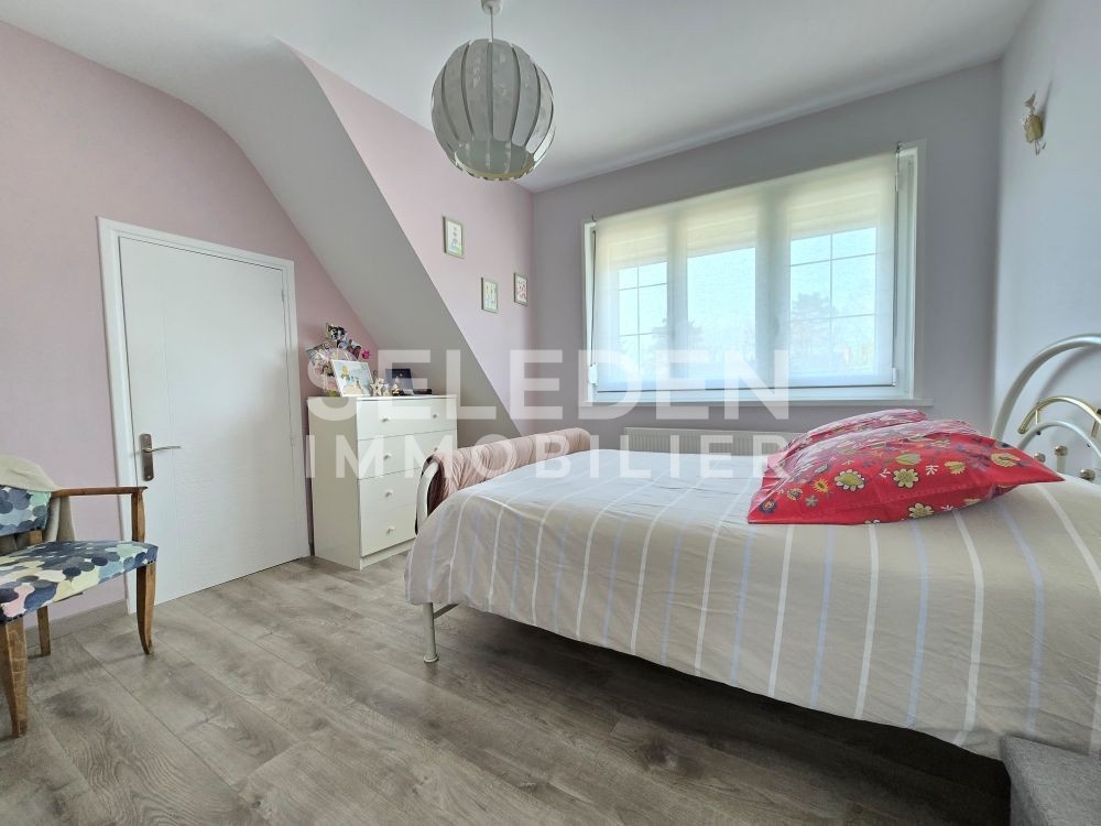 Vous y retrouverez également une véranda lumineuse, un sous-sol complet avec garage double, un grenier pouvant être aménagé en 4e chambre, une allée vous permettant de rentrer plusieurs véhicules et un beau jardin ensoleillé.
