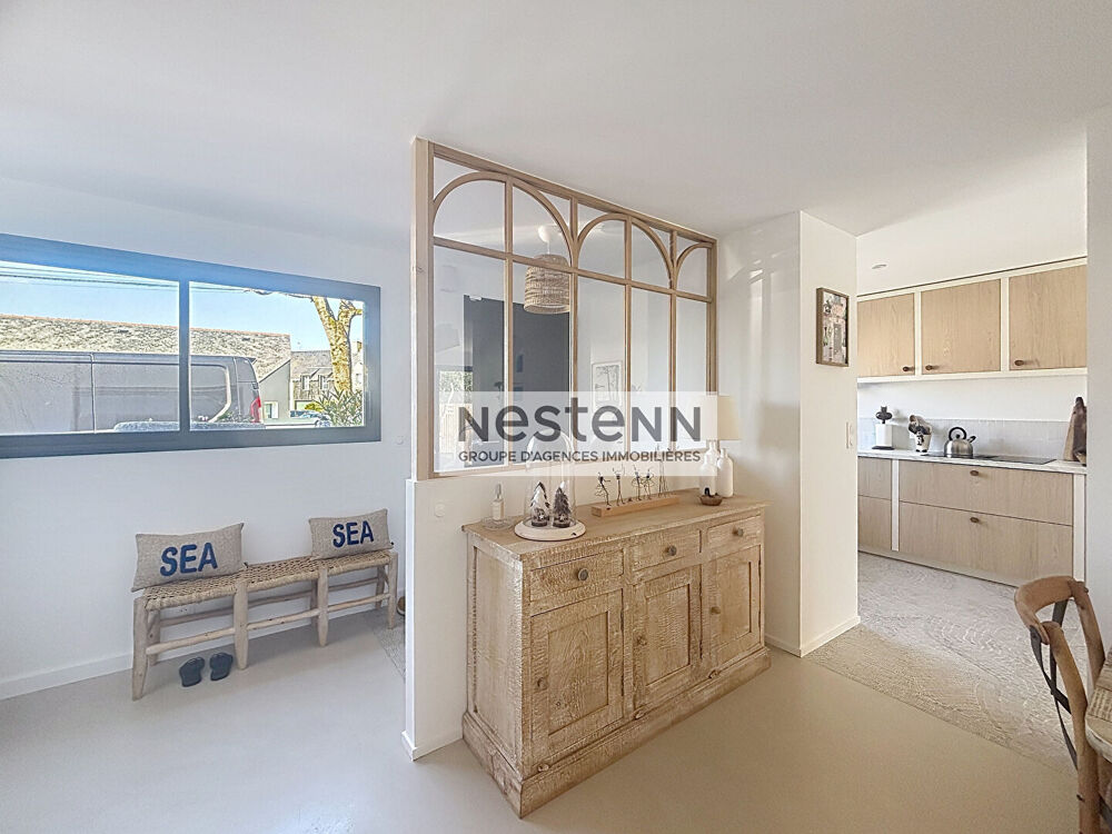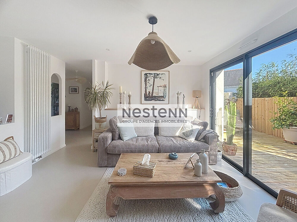 Posez vos valises ! Votre agence NESTENN vous propose, en plein coeur du centre-ville de Guérande, cette maison contemporaine entièrement rénovée avec goût en 2025. Offrant deux espaces de vie distincts, elle se compose au rez-de-chaussée d'une entrée, d'un vaste séjour lumineux ouvert sur une terrasse exposée plein sud, d'une cuisine neuve aménagée et équipée, d'une buanderie, d'un WC, d'une salle d'eau, d'une chambre ainsi que d'une suite parentale avec dressing, salle d'eau et WC. Une agréable terrasse avec pergola et espace détente complète ce niveau. A l'étage, vous trouverez un appartement indépendant comprenant un salon-séjour, une cuisine aménagée et équipée, une chambre, une salle d'eau, un WC indépendant ainsi qu'une grande terrasse. Un carport fermé et des stationnements viennent compléter ce bien. Contactez-nous pour une visite ! (3.64 % honoraires TTC à la charge de l'acquéreur.)Surface terrain : 300