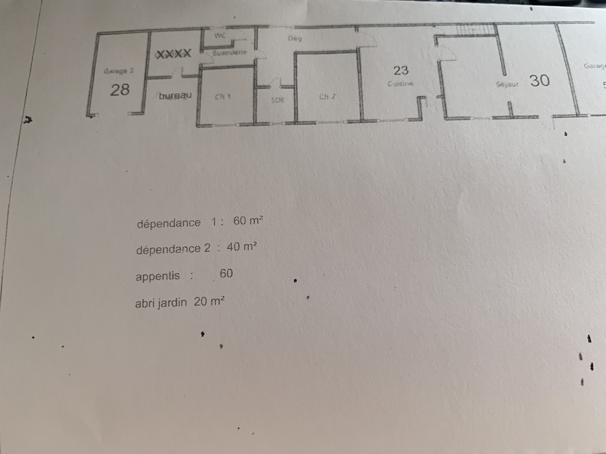 avec dépendances : 60 et 50 m2, un appentis de 60 m2, abris de jardin, 2 garages de 55 et 28 m2