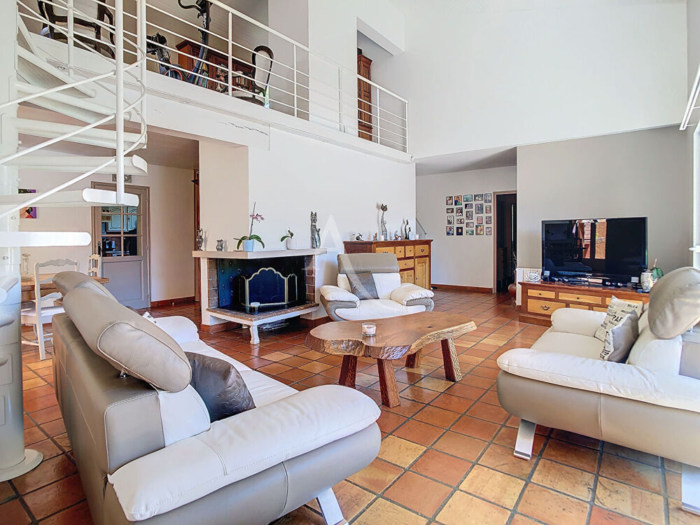 L'ADRESSE IMMOBILIER MURET - COUP DE COEUR ASSURÉ - BEAUX VOLUMES - BELLES PRESTATIONS - SAINT-HILAIRE - Vous recherchez, une maison familiale, de plain-pied alliant confort et volumes le tout situé seulement à 10 minutes de Muret ? Propriété individuelle nichée dans son écrin de verdure, un cadre idyllique pour toute la famille ! Elle se compose d'un hall d'entrée donnant sur un double séjour lumineux avec hauteur cathédrale, sa cheminée centrale à foyer ouvert et une rochelle baignée de lumière, le tout climatisé offrant un espace de vie cumulé de plus de 70 m². Une belle cuisine dinatoire indépendante aménagée et équipée. Côté nuit, elle continuera de vous séduire avec ses 5 chambres avec parquet massif, dont une chambre d'enfant et une avec sa salle d'eau privative, une salle de bains et une salle d'eau supplémentaire, un dressing, espace buanderie - cellier, 2 W.C séparés. Vous allez tomber sous le charme des espaces extérieurs paysagés offrant un cadre de vie et un environnement des plus agréable avec ses 2 terrasses, la Piscine 10 x 5 exposée Sud-Ouest et son Pool House pour profiter des beaux jours en famille ou entre amis. Les plus : Double garage. Climatisation réversible. Grenier. Dressing et nombreux rangements. Matériaux de qualité : Carreaux Barthe, Parquet massif. Espaces de stationnement. Portail motorisé. Le tout édifié sur un terrain clos et paysagé d'une superficie d'environ 3 090 m². Prêt à avoir le coup de coeur ?! Contactez nous au O5.32.O9.66.5O pour organiser une visite !Etat général : Bon Etat