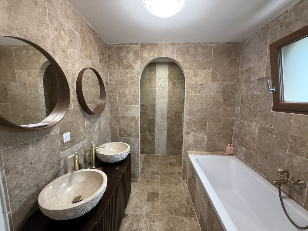 À l'étage, vous trouverez deux chambres spacieuses et une chambre avec sa terrasse privative de 28 m2 , Une salle de bains avec baignoire, douche et un WC assurent le confort de tous les occupants.