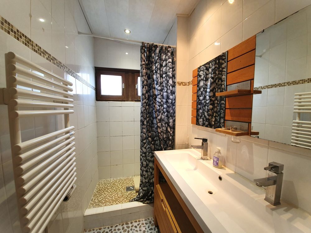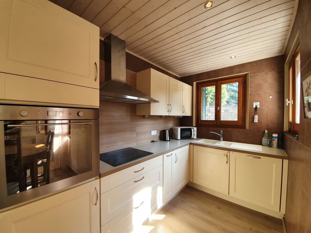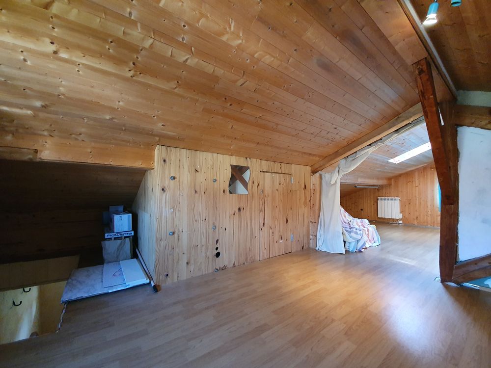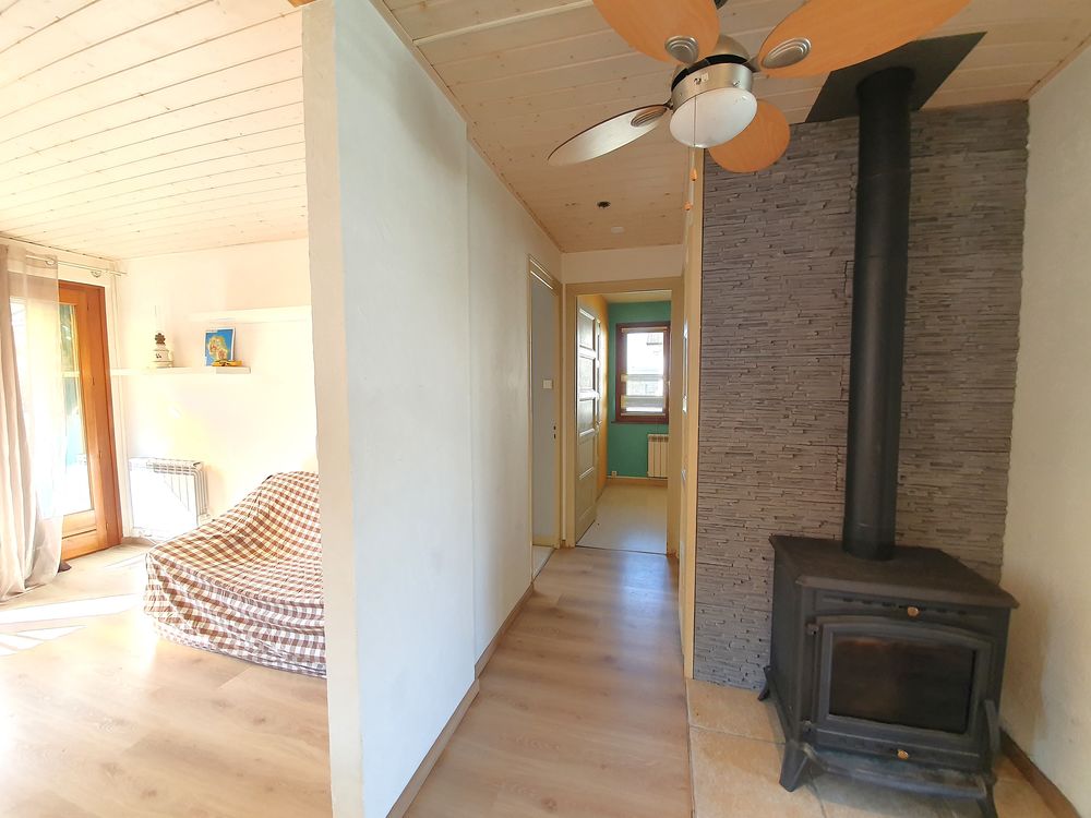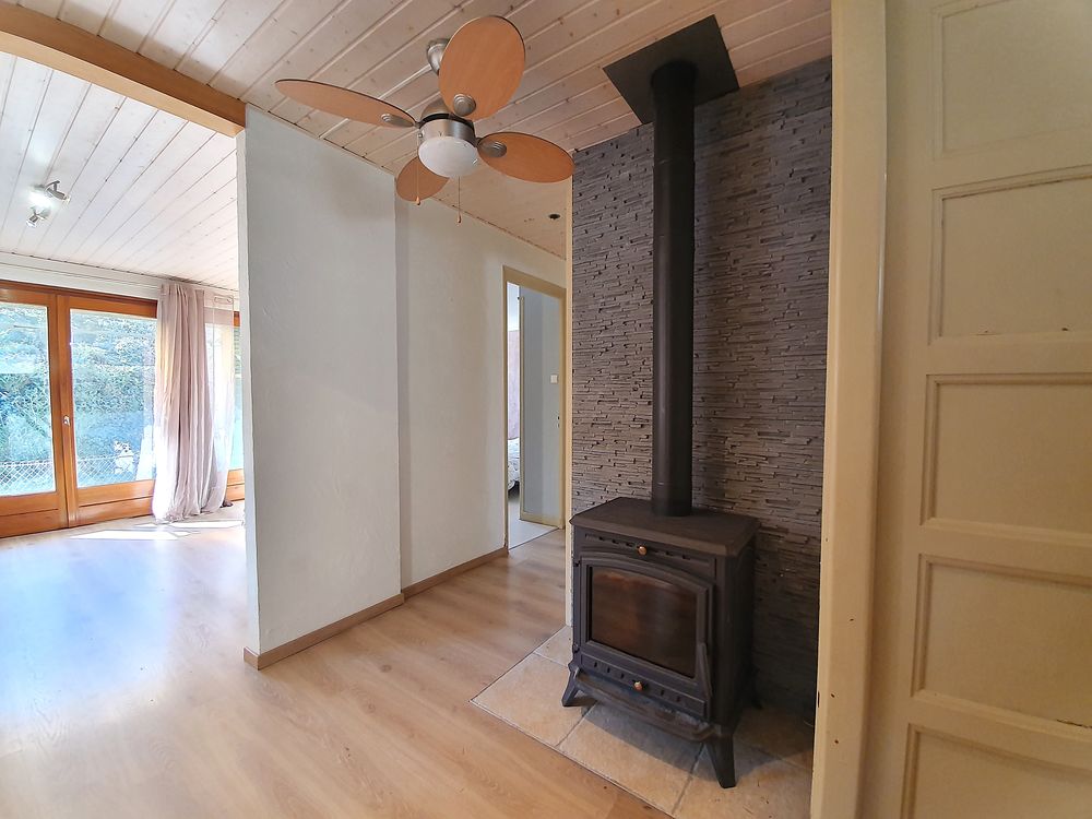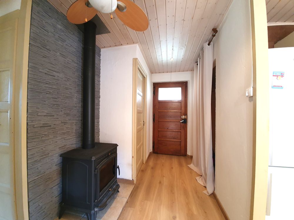 Construite dans les années 1980, la maison est équipée d'un système de chauffage électrique completé par un poêle à bois.