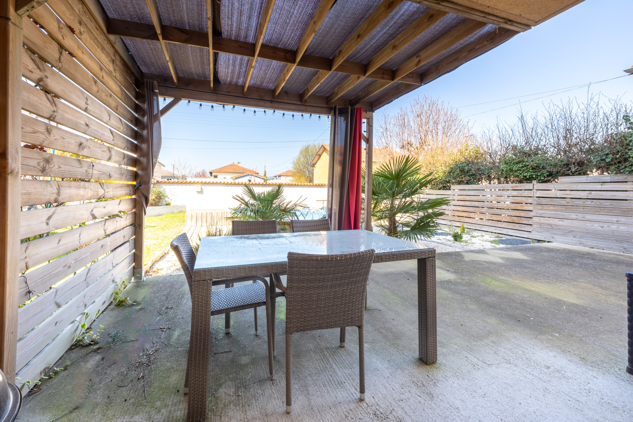 Profitez d'un jardin orienté Ouest, parfait pour se relaxer sous le soleil. La grande terrasse invite aux repas en plein air, avec une piscine semi enterrée.