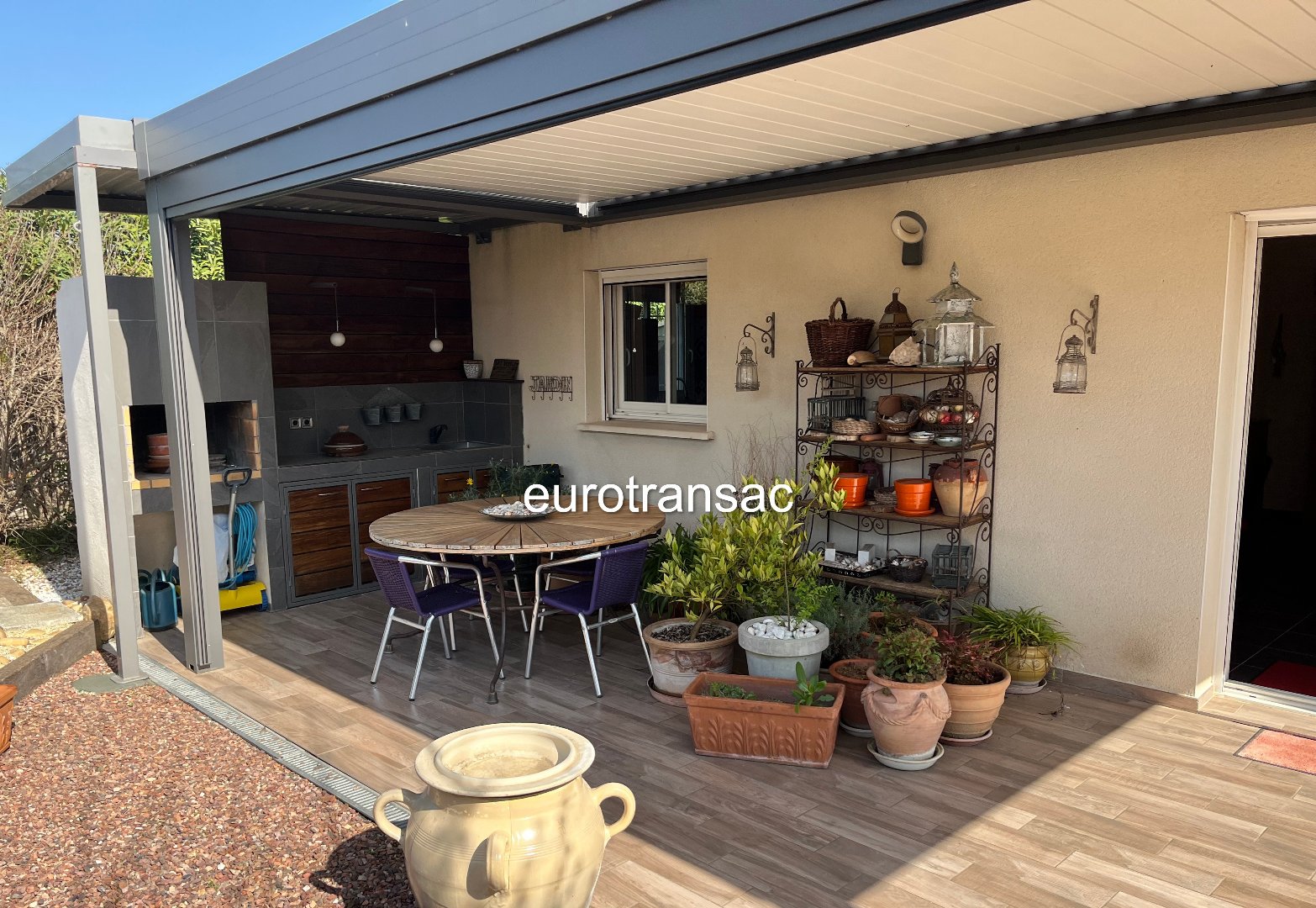 Située dans un quartier calme avec une vue sur la garrigue,très belle maison de plain pied, 4 chambres, salle de bain et salle d'eau, pièce de vie de 40m² ouverte sur une pergola bioclimatique.Piscine 4 x 2.5 au sel .Magnifique jardin méditerranéen.