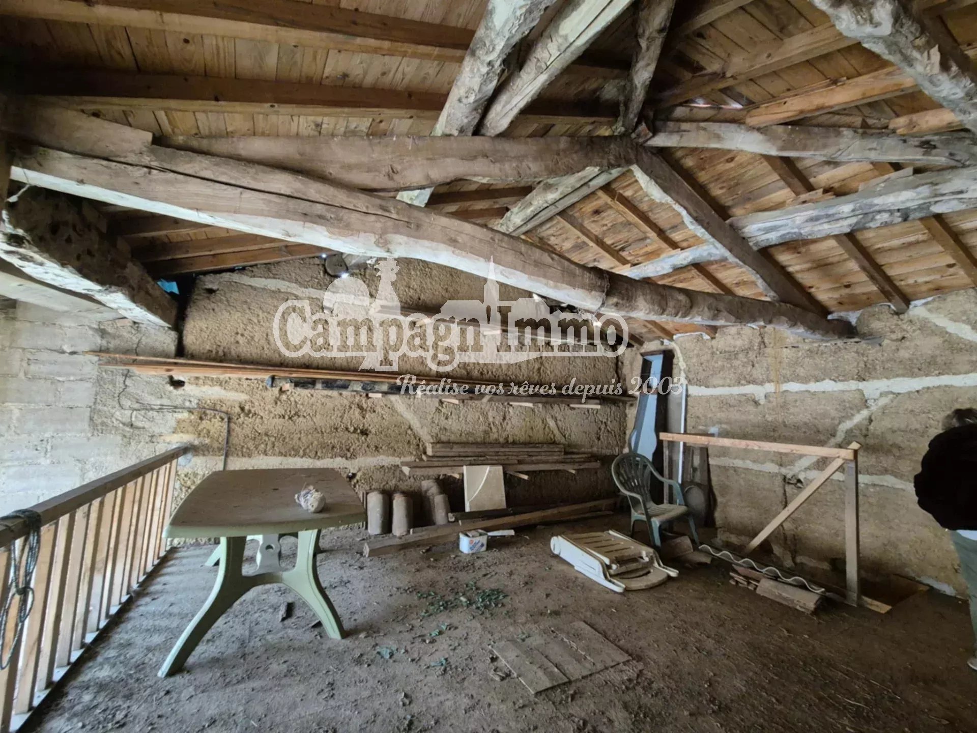 À l'extérieur, terrain clos avec espace de stationnement et dépendances, dont une grange d'environ 40 m² au sol.