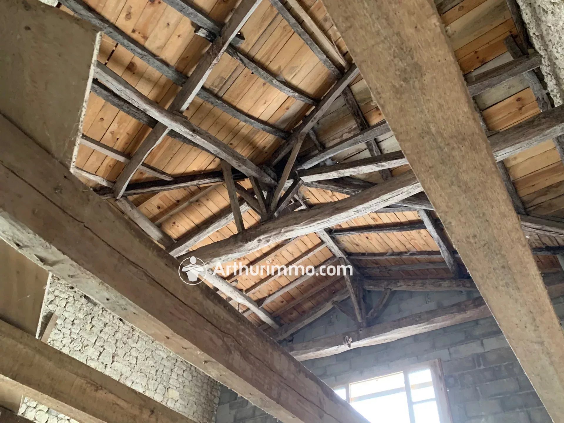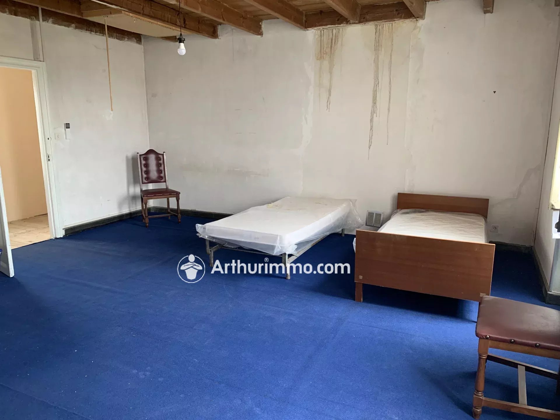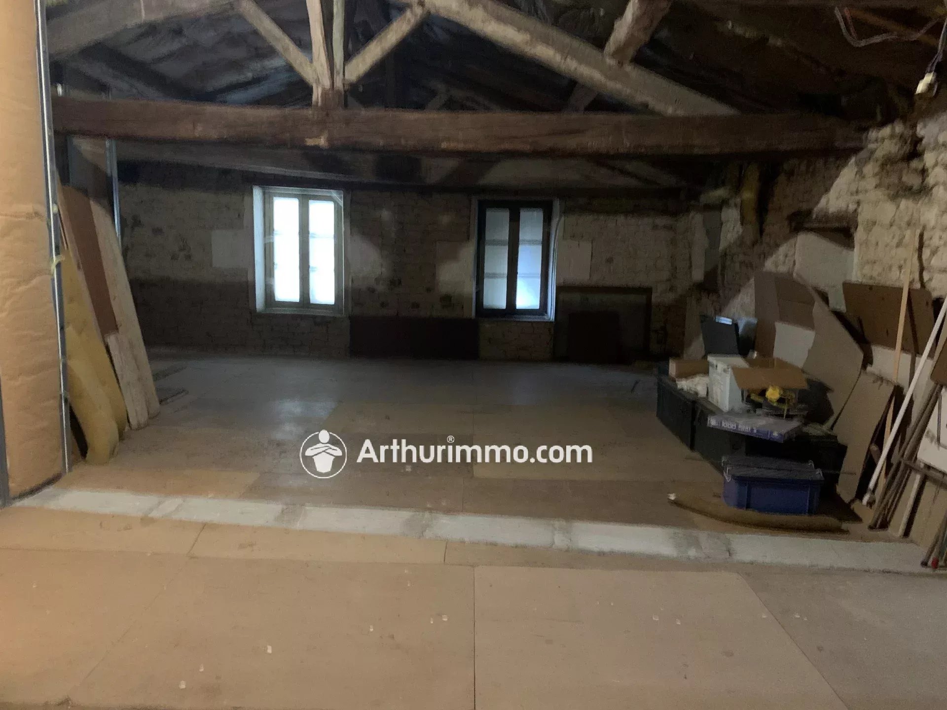 A l'étage, grand grenier aménageable de 75 m2 avec point d'eau (WC et lave-mains).