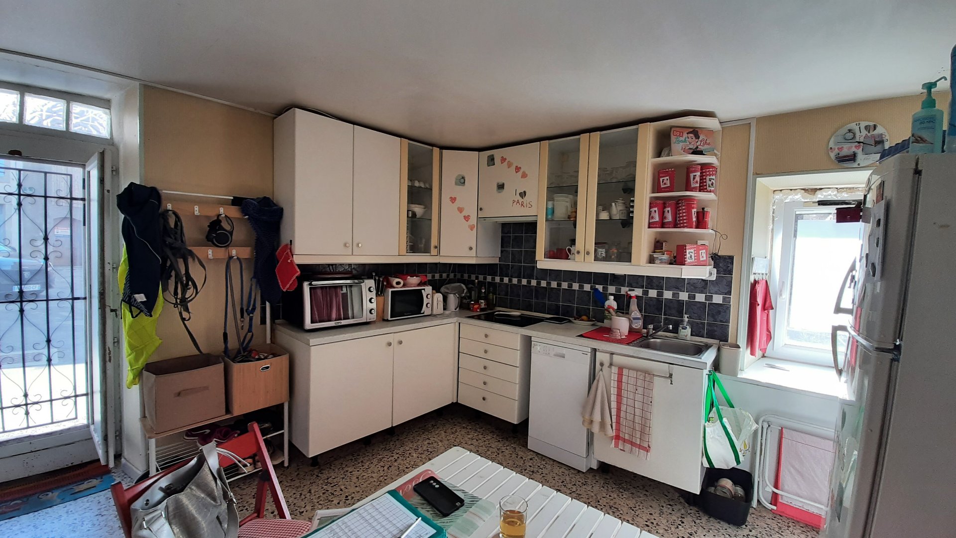 Maison de village en pierre 2 faces de type 3 comprenant 2 chambres, une cuisine aménagée et équipée, un salon, une salle d'eau et un WC séparé.Elle est équipée de menuiseries en PVC double vitrage et moustiquaires.