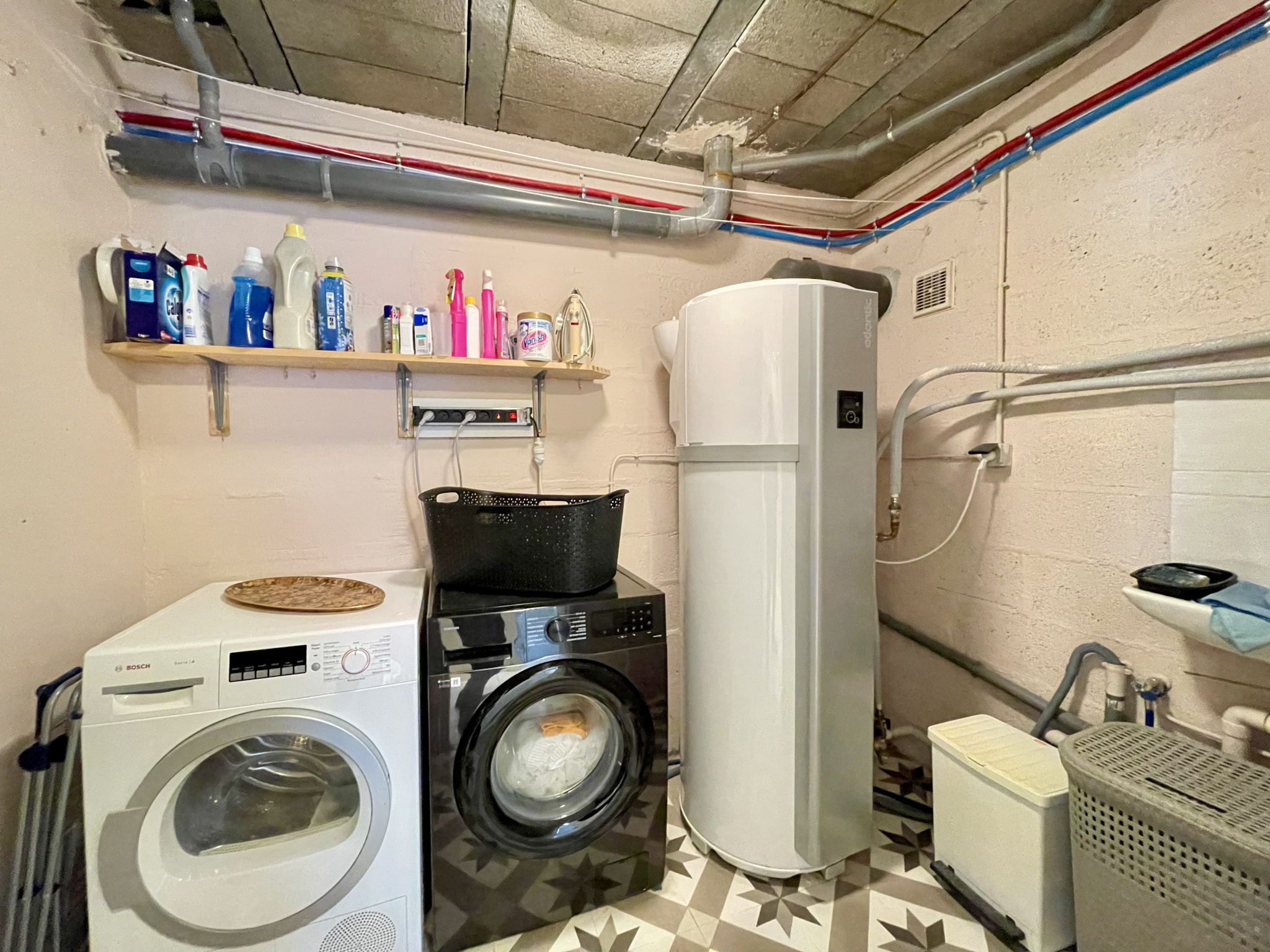 Tout à l'égout avec pompe de relevage. Chauffage : PAC air/eau + central gaz bonbonne.