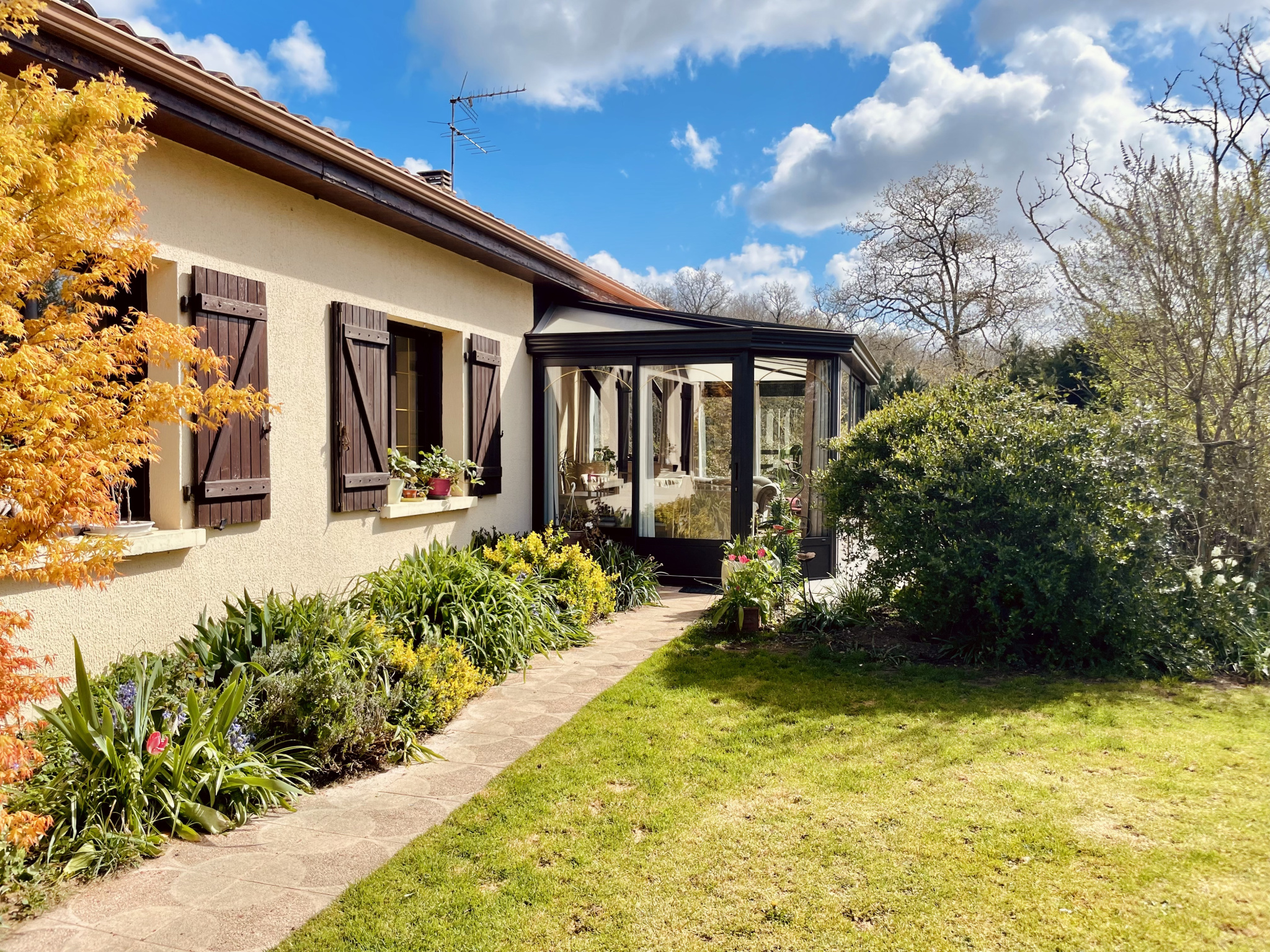 DANS UN CADRE VERDOYANT, BELLES PRESTATIONS, JOLIE MAISON DE VILLAGE RÉNOVÉE PLAIN PIED AVEC SOUS SOL ET PARC