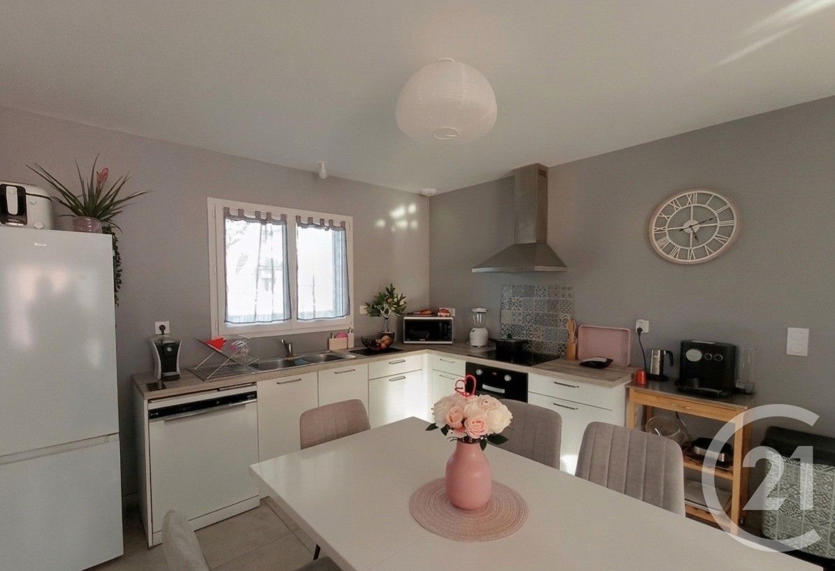 Cette villa de 85m2 se distingue par sa luminosité exceptionnelle avec une exposition plein sud. La pièce de vie, spacieuse et ouverte, constitue le c½ur de la maison. La partie nuit se compose de trois chambres, toutes équipées de placards de rangement intégrés. D'un toilette et d'une salle d'eau avec un deuxième wc.