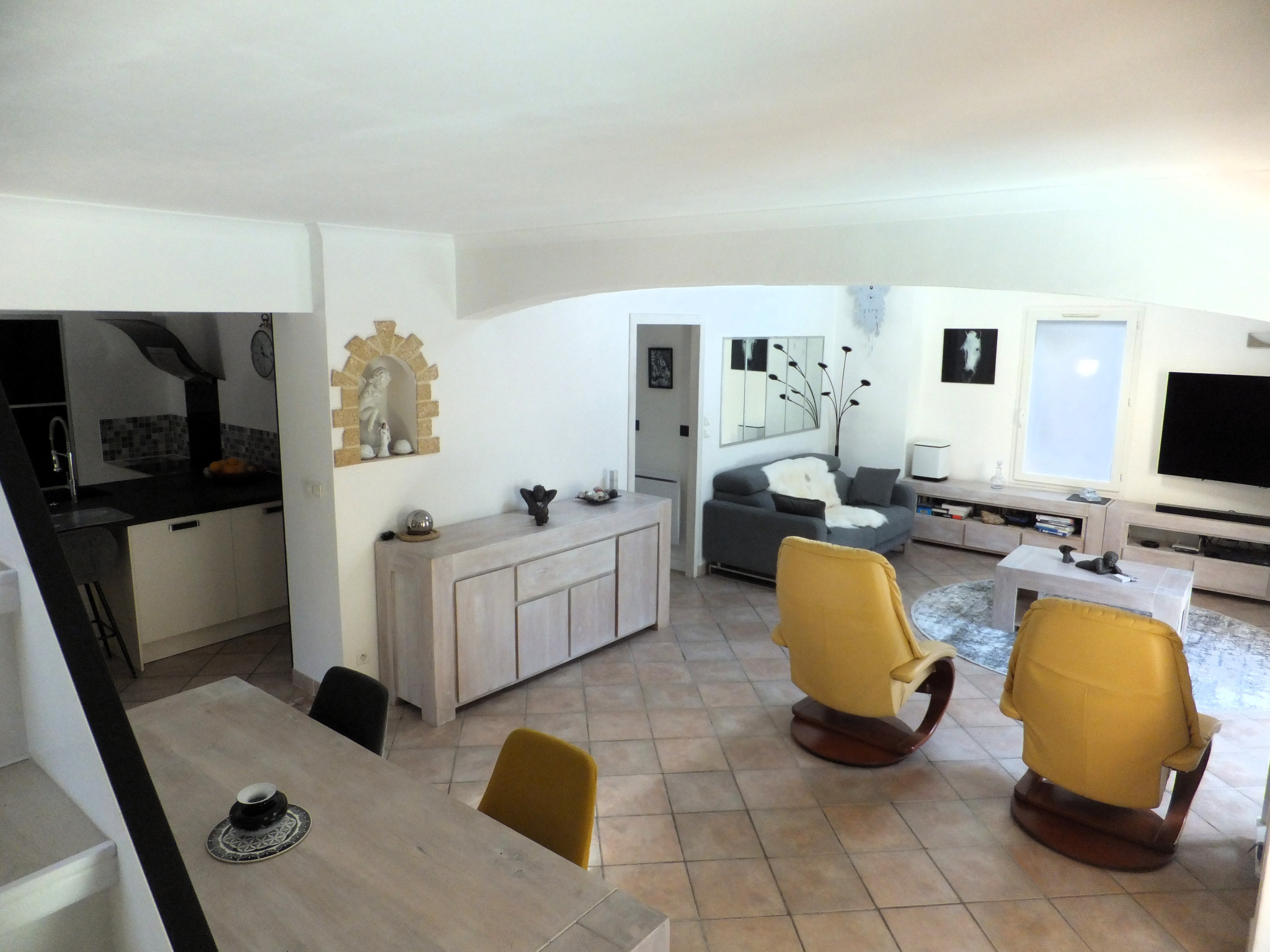Prestations de qualité : Climatisation réversible, fenêtres PVC double vitrage, baies en aluminium à galandage, volets roulants électriques, portes intérieures à galandage, adoucisseur d'eau, visiophone, portail automatique...