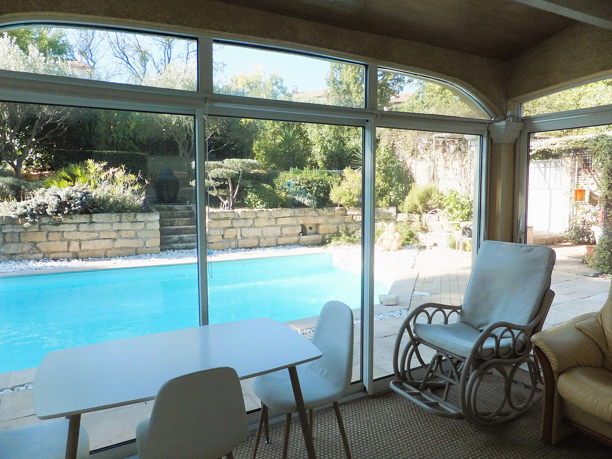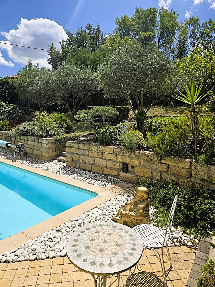 À l'extérieur : piscine traditionnelle 7,40 x 3,50 m, cuisine d'été, jardin paysagé, dépendances et abri voitures. Plusieurs places de parking, possibilité de garer un camping-car.