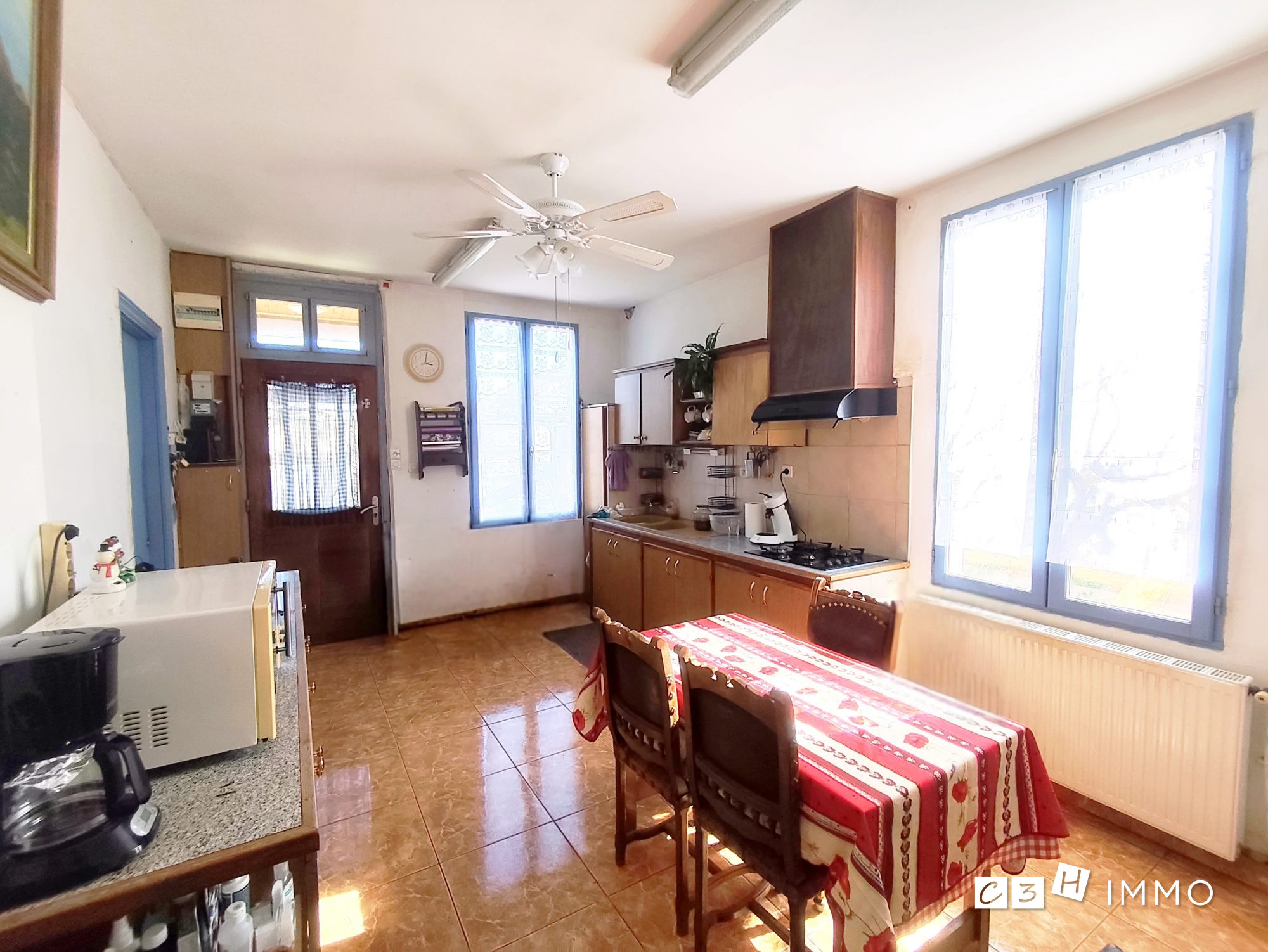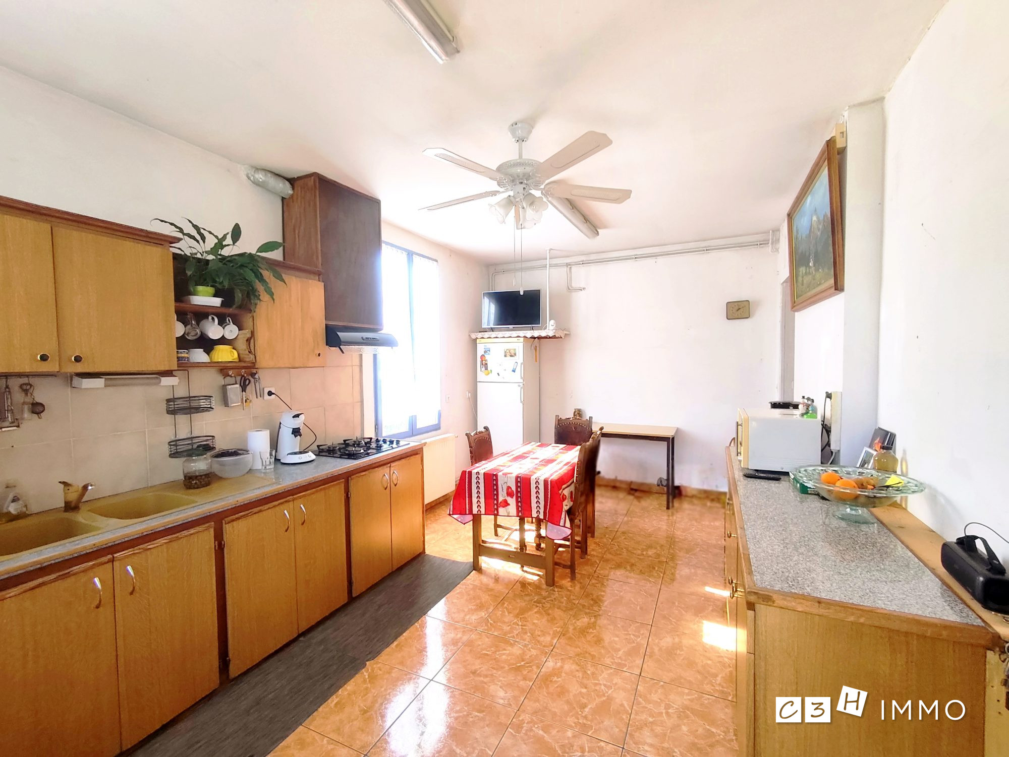 Une cuisine spacieuse dinatoire partiellement équipée,