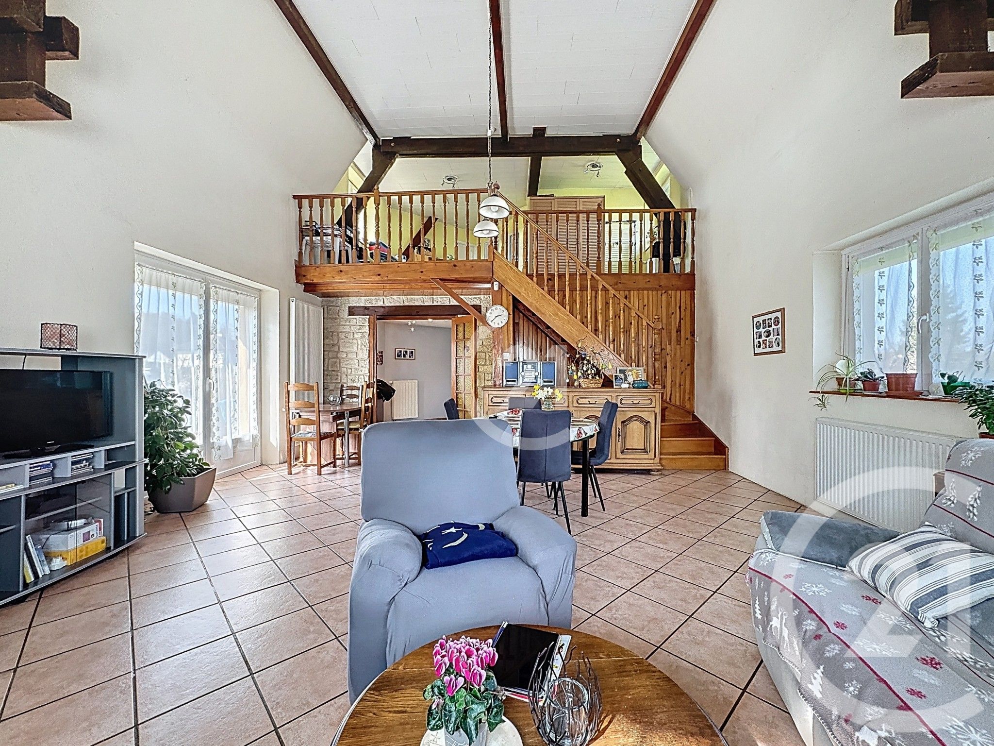 celle ci est composée d'une magnifique pièce de vie avec 5m de hauteur sous plafond, une mezzanine, ainsi qu'un sous sol complet avec nombreux rangements,