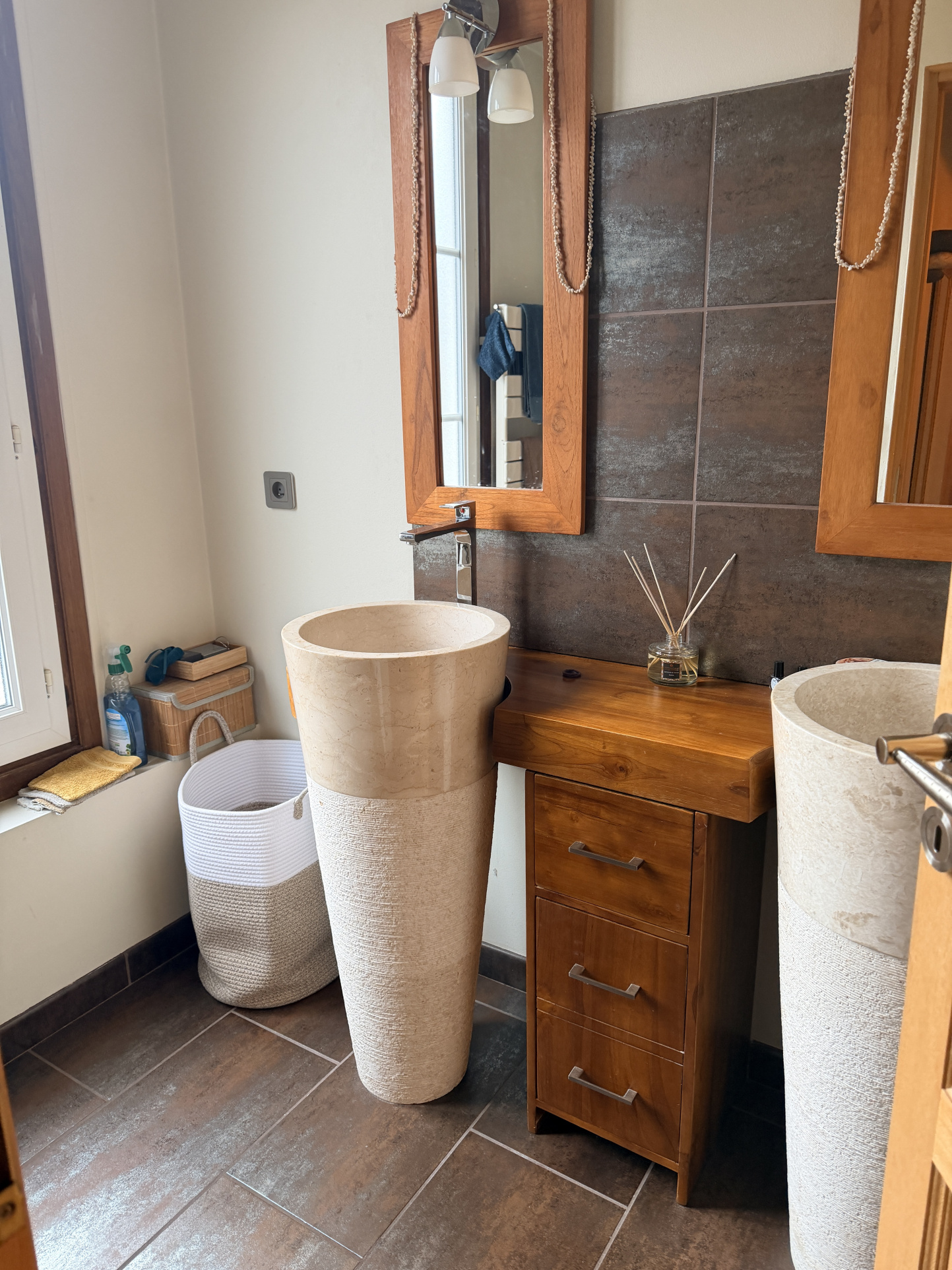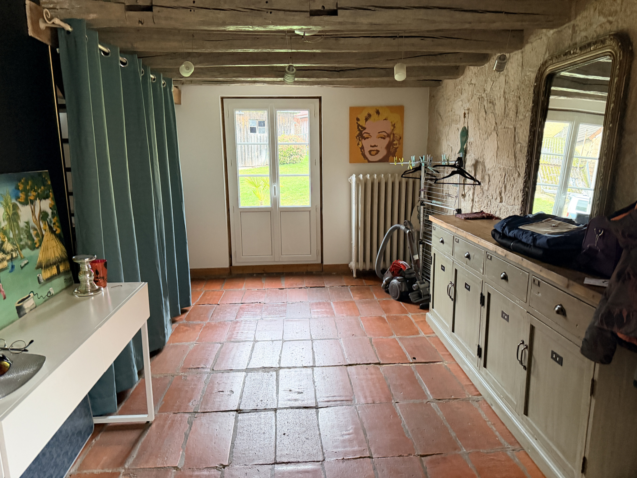 buanderie, Wc avec vasque, espace bureau ou chambre avec accès au jardin et la terrasse.