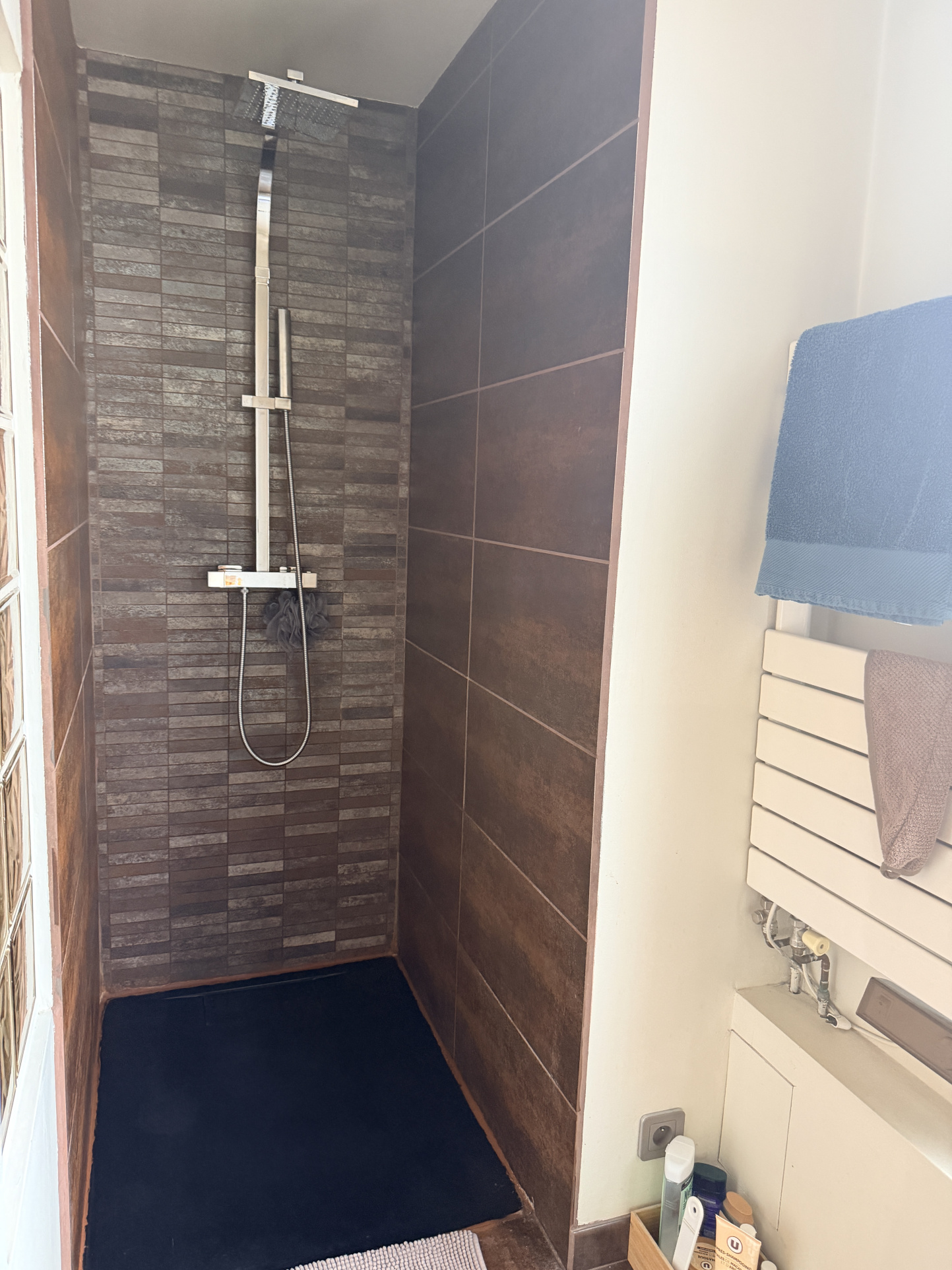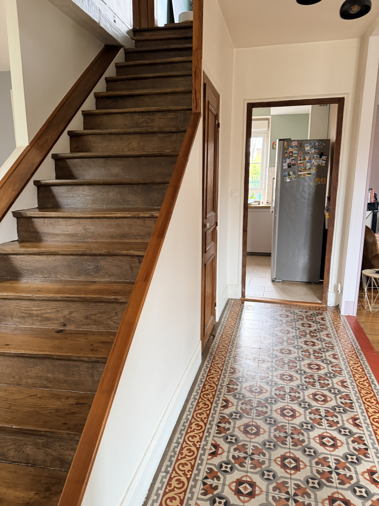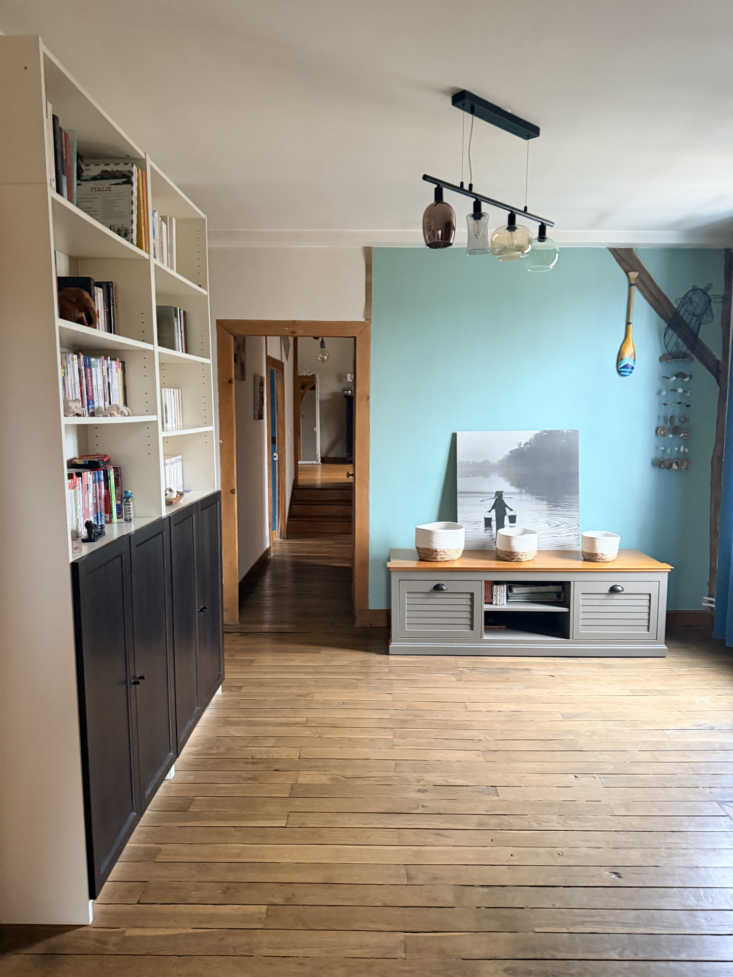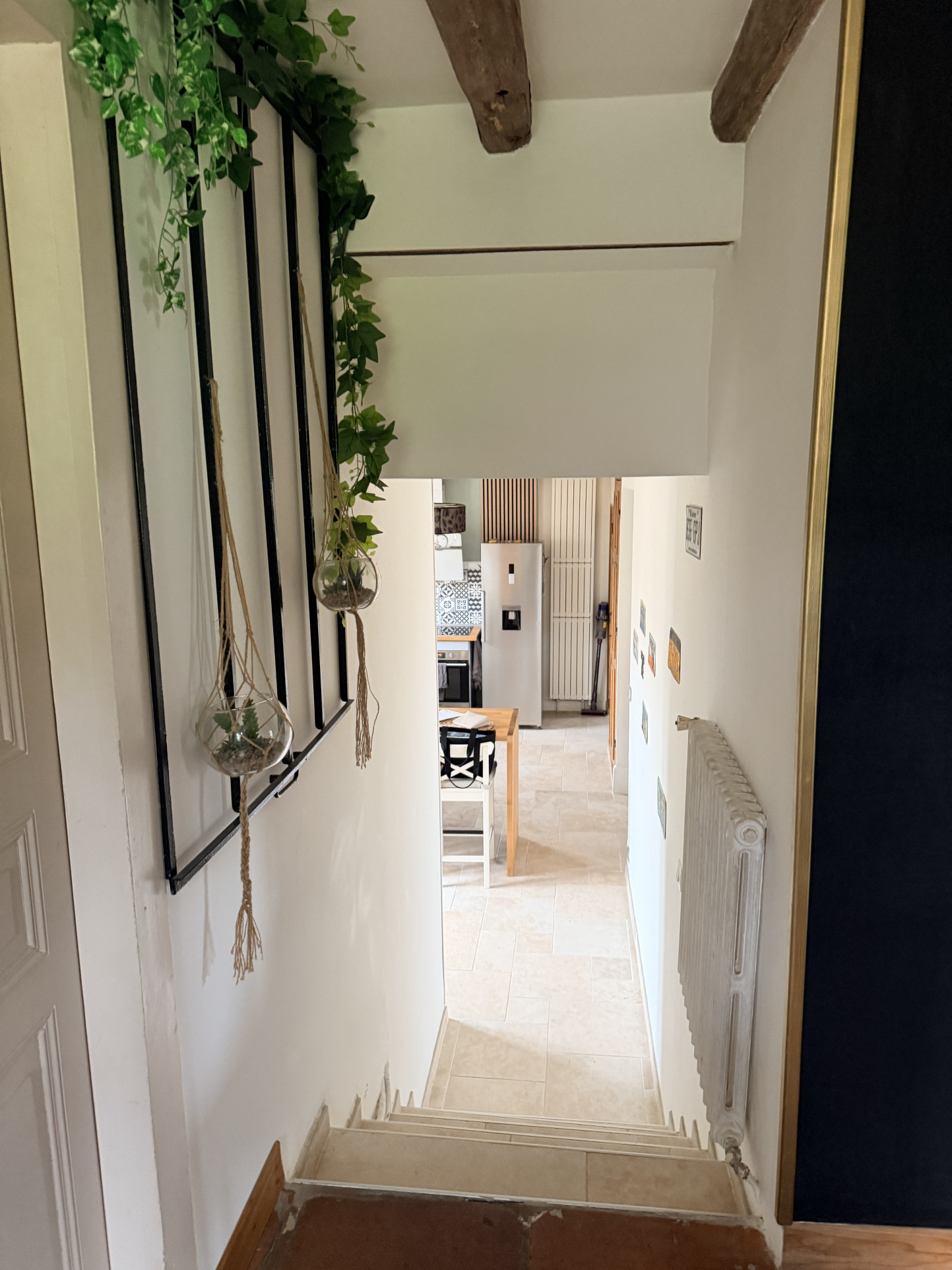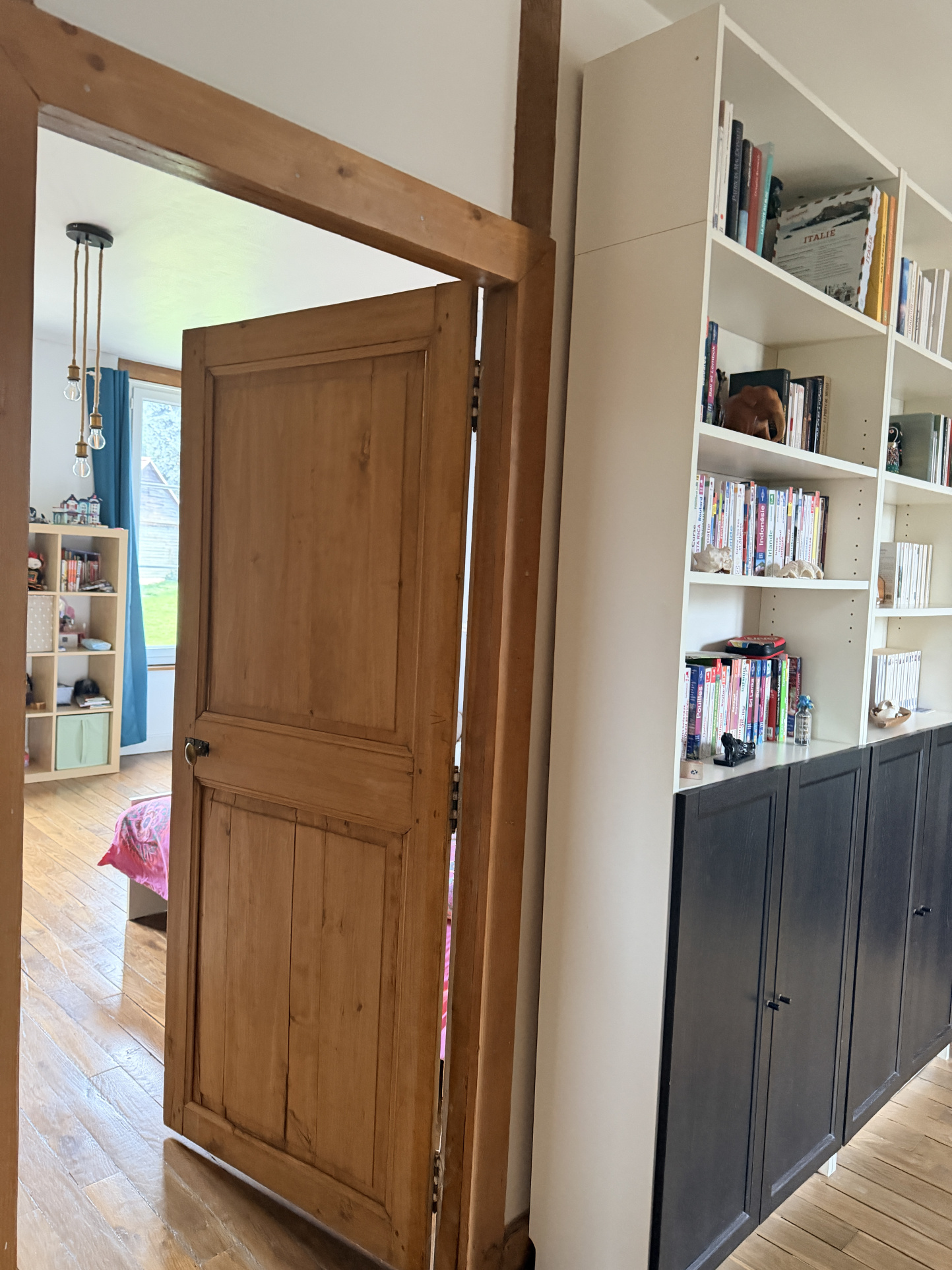 A l'étage: avec deux accès indépendant, un grand palier, salle d'eau, Wc, 4 chambres dont 2 avec salle d'eau privative et une grande chambre avec un espace grenier manssardé (en salle de sport ).
