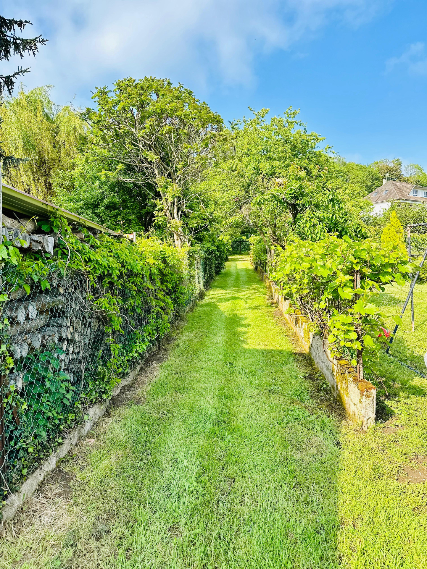 Accès intérieur parking goudronné, grande Grange, jardin clos et arboré avec terrasses et coin barbecue, piscine bois hors sol, puits le tout sur un terrain de 2261 m2.