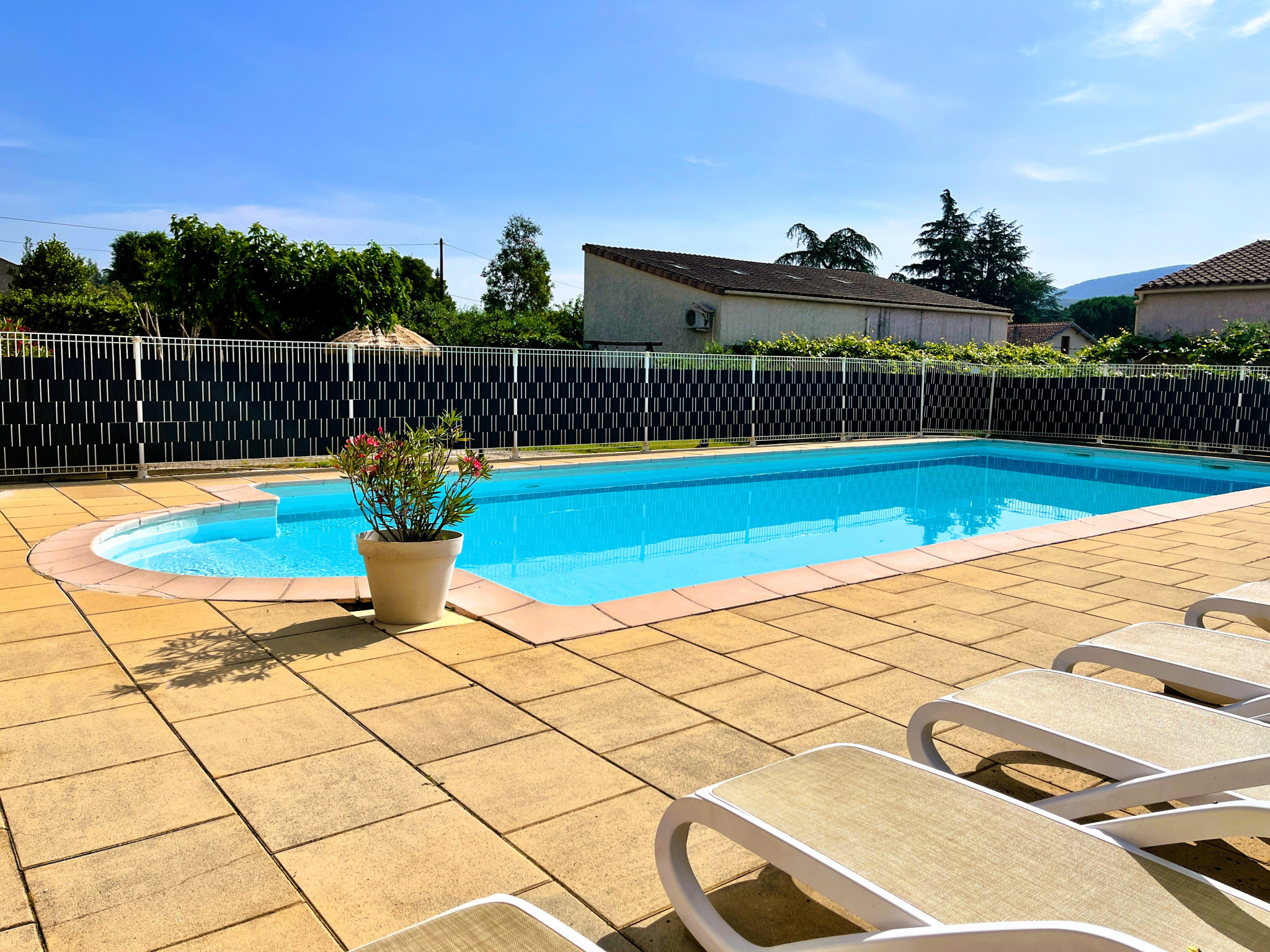 L'ensemble des résidents pourront profiter de la grande piscine, du terrain de pétanque et du petit parc arboré.