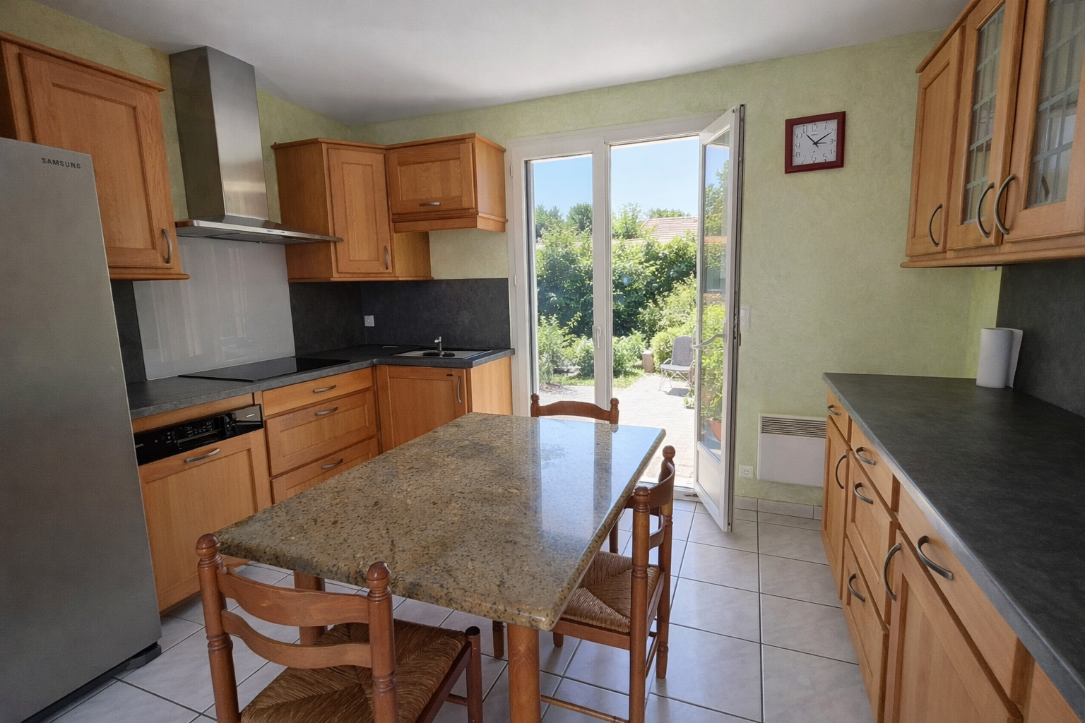 Découvrez cette charmante maison offrant des prestations de qualité, idéale pour une famille en quête de confort et d'espace.Elle se compose de trois chambres lumineuses, d'une cuisine entièrement équipée, ainsi que d'un spacieux salon-séjour agrémenté d'un poêle à granulés et d'une climatisation, garantissant un confort optimal en toute saison.