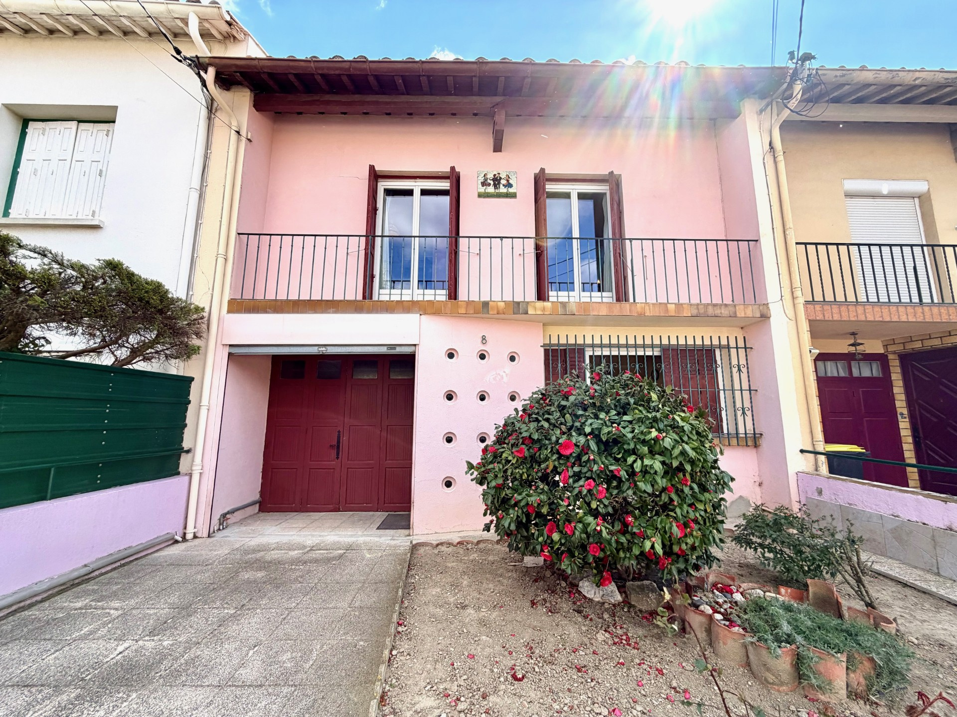 Perpignan, Maison en 2 faces R+1 comprenant en RDC un hall, une cuisine, un grand salon/séjour donnant sur jardin (possibilité d'ouvrir la cuisine sur la pièce à vivre), un garage et une buanderie (cuisine dété possible, elle profite d'un accès au jardin), en demi niveau un WC, à l'étage 3 chambres dont une donnant sur terrasse, une salle d'eau.Agréable jardin plein sud et arboré de fruitiers, une serre en dur, forage.