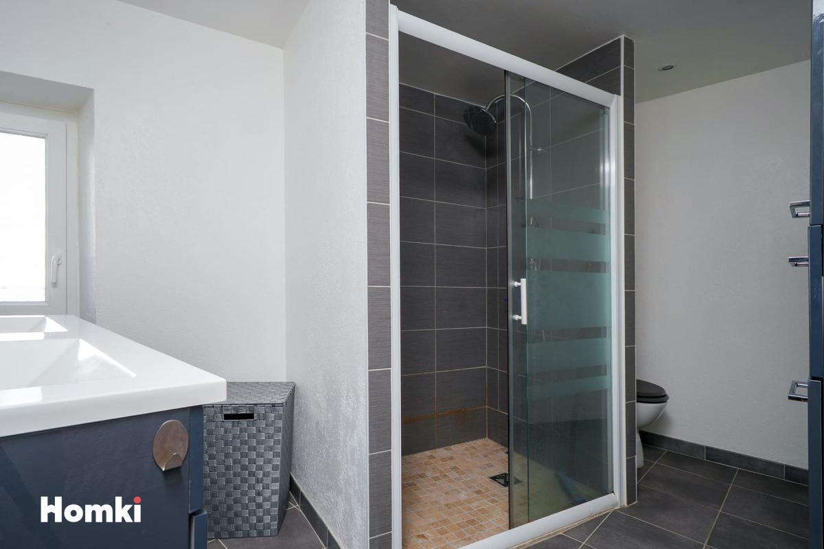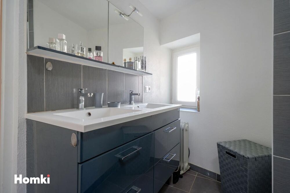 Au premier étage, une salle d'eau moderne avec meuble double vasque et WC ainsi qu'une première chambre.