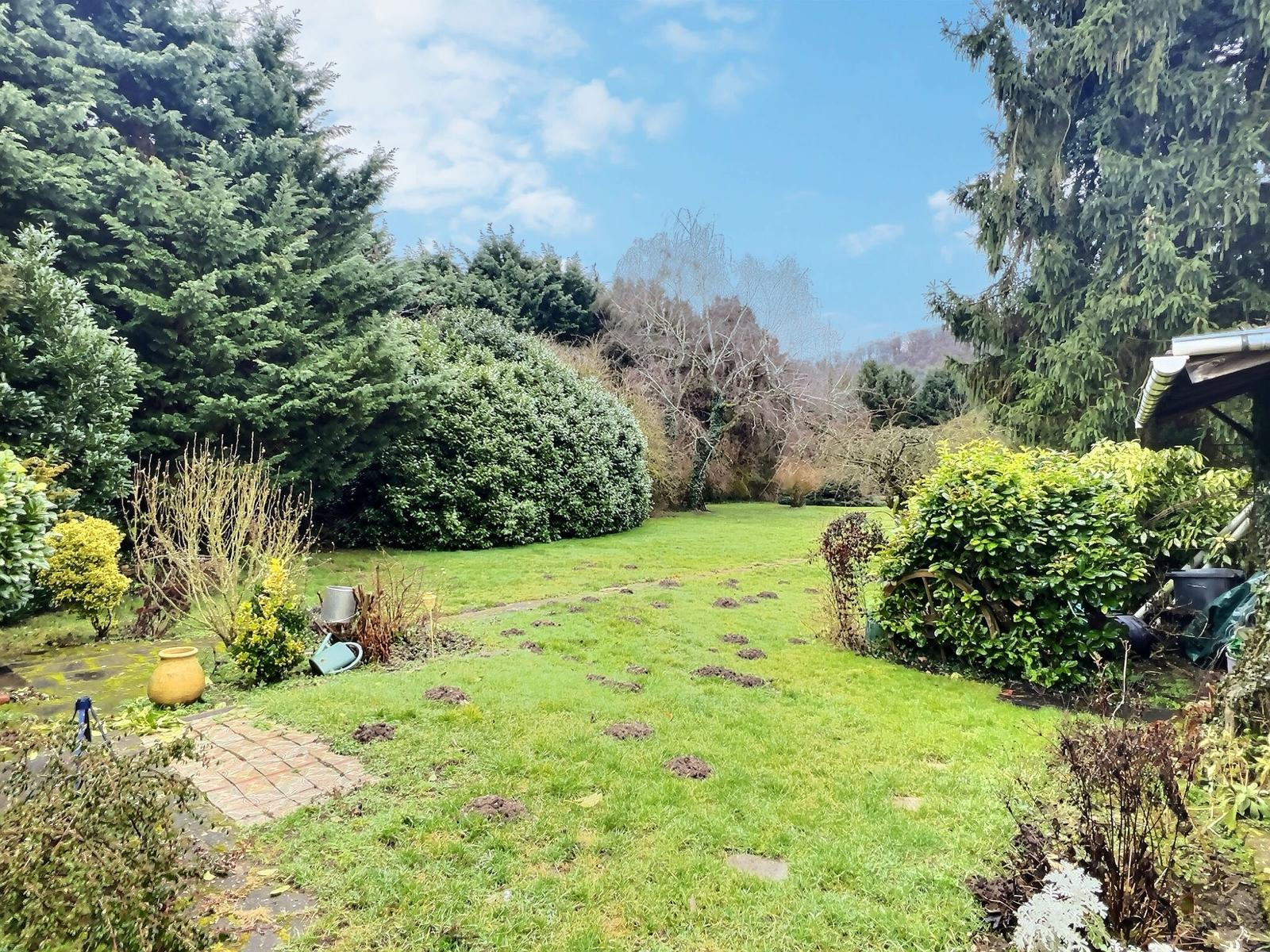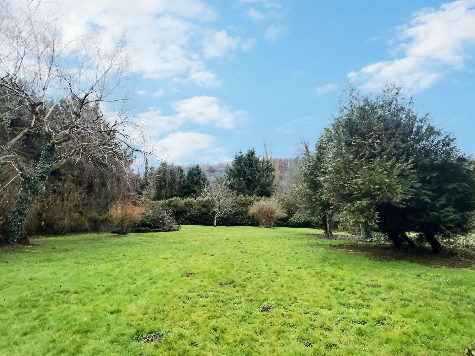 Le terrain de 38 ares 65 est complètement clôturé et arboré.
