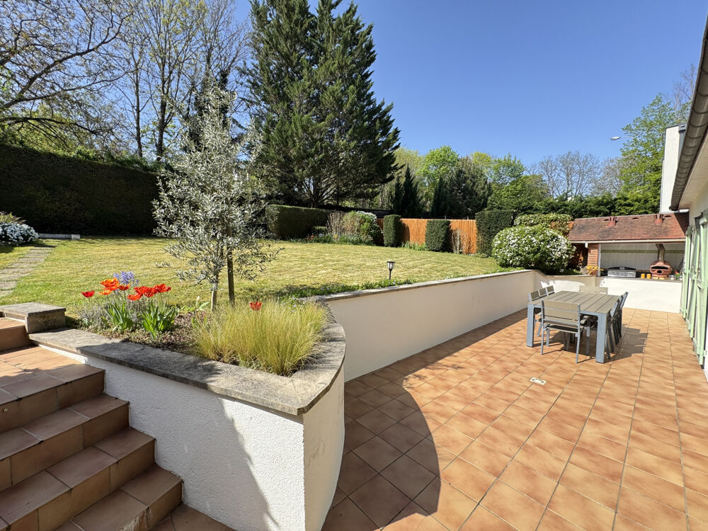 Maison 6 pièces de plain-pied située à Saint-Germain-en-Laye, offrant une surface habitable de 131 m2, édifiée sur un terrain de 659 m2 exposé plein sud.Elle se compose d'un séjour spacieux de 47 m2, d'une cuisine séparée équipée, de quatre chambres, d'une salle de bains, d'une salle d'eau, d'un WC ainsi que d'une buanderie.