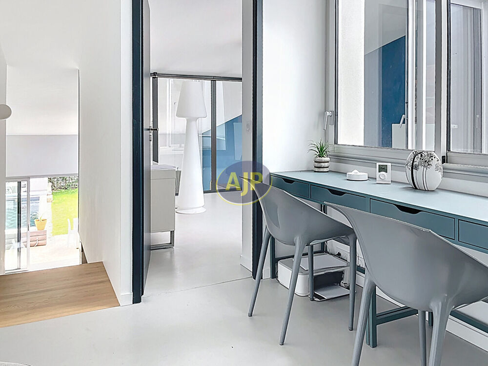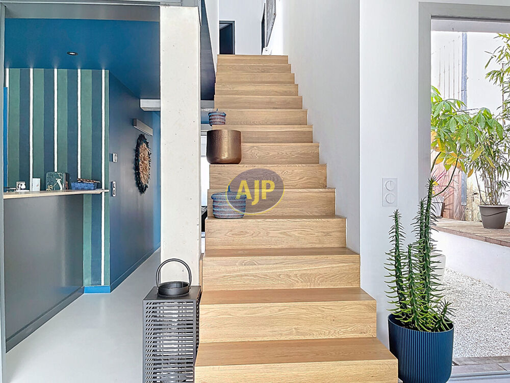 TALENCE : Situation exceptionnelle entre Forum et Roustaing avec tous les commerces de bouche et de service et le tram B, ligne de bus 31 via gare Saint-Jean, maison ultra contemporaine réalisée par architecte en 2024 avec des matériaux et des prestations de qualité. L'orientation plein sud de chaque pièce en font aussi un bien unique. Grand garage d'accueil aménagé de 22 m², entrée avec placard sur mesure, suite parentale donnant sur un patio de 18 m², arrière cuisine, cuisine verrière équipée, salon/séjour de 48 m² avec îlot central et mobilier de rangement, belle hauteur sous plafond rampant et wc. A l'étage : un bureau, 2 chambres de 17 m² avec placard aménagé et 2 salles d'eau privatives donnant sur un patio et une 4 ème chambre de 13 m² puis wc. Jardin Sud sans aucun vis-à-vis avec piscine, terrasse IP et espace véranda possible. Chauffage pompe à chaleur. Domotique. Sol béton ciré. Possibilité de louer en complément un box de parking à 2 minutes. Bien unique sur ce secteur très convoité. (2.30 % honoraires TTC à la charge de l'acquéreur.)Surface terrain : 270