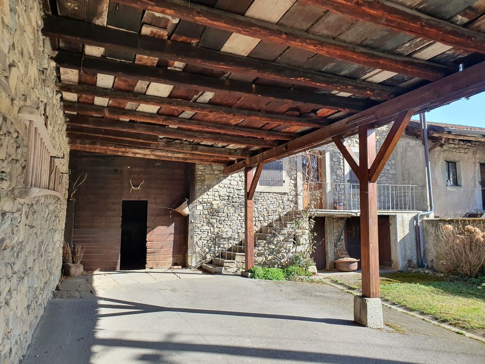 Un préau vient abriter la cour goudronnée d'environ 60 m², complétée par une seconde grange à l'étage à valoriser selon vos projets.