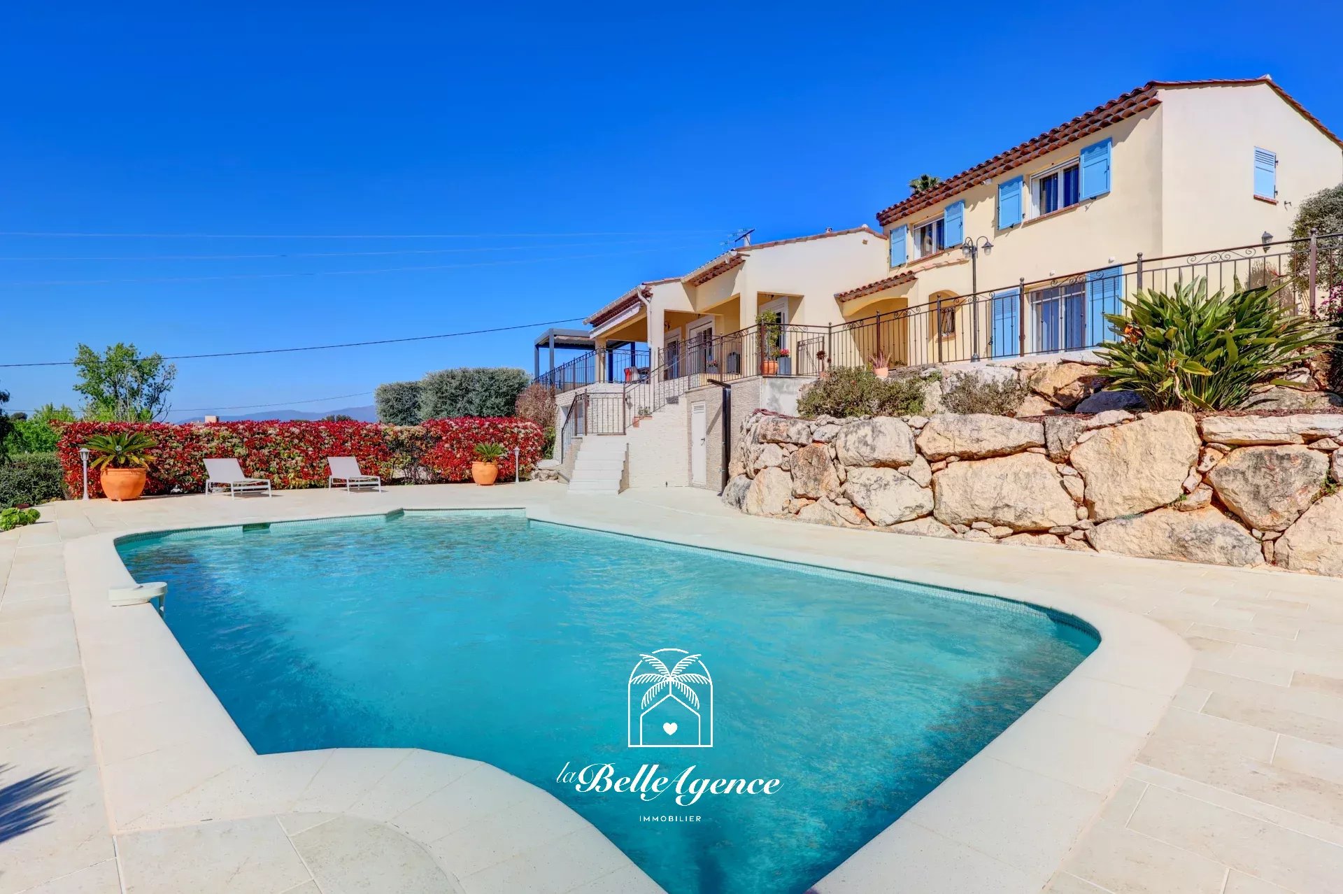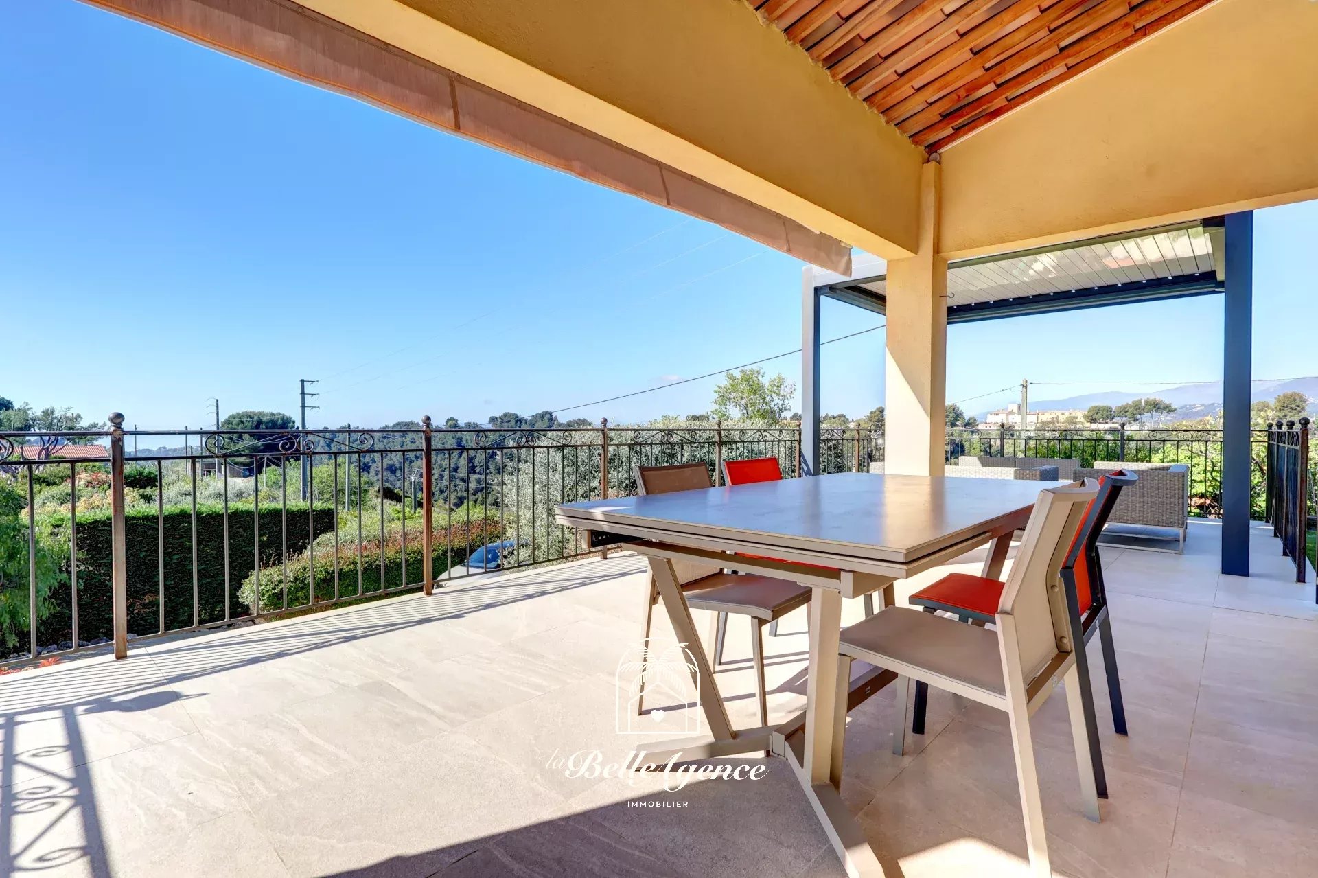COLLINES DE ST LAURENT DU VAR: située sur le secteur de Montaleigne, dans une impasse au calme absolu, en position complètement dominante,Je vous propose «Luna», une magnifique villa individuelle, construite en 2009, de 125m2 (+100m2 de sous-sol) entièrement rénovée avec de beaux matériaux, sur 3 niveaux bénéficiant d'un magnifique terrain de 1500m2 complètement aménagé.
