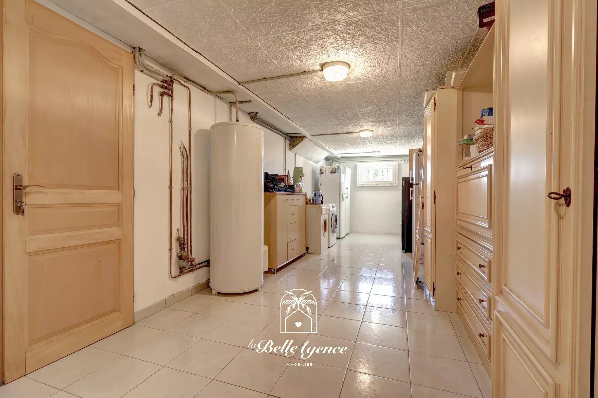 Au sous-sol, 100m2 d'espace supplémentaire, avec buanderie, cave à vin et espace garage pouvant accueillir facilement 2 véhicules.