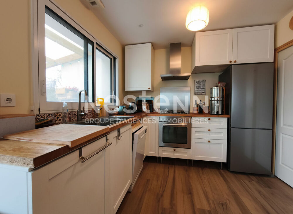 Notre agence vous propose cette maison à vendre à Saint Nolff, récente, de 82 m², construite en 2023, située au coeur d'un quartier résidentiel calme et éco-responsable (eco hameau), pensée pour un cadre de vie durable et harmonieux. A proximité immédiate des écoles et des commodités, cet environnement privilégie la qualité de vie, avec notamment un potager commun à disposition des habitants. La maison qui est mitoyenne offre une vie de plain-pied et se compose comme suit : Au rez-de-chaussée : - d'une cuisine aménagée et équipée ouverte sur la pièce de vie, - d'une arrière cuisine - d'une chambre - d'une salle d'eau avec wc. A l'étage : - deux chambres - un bureau - une salle d'eau avec wc. Équipée d'une pompe à chaleur, elle s'inscrit dans une démarche de performance énergétique en cohérence avec l'esprit du quartier. En parlant du quartier, il a été pensé de manière à limiter la circulation automobile : le stationnement se fait en commun en dehors de la zone d'habitation. Le tout sur un terrain de 337 m², raccordé au tout-à-l'égout. (5.50 % honoraires TTC à la charge de l'acquéreur.)Etat général : Bon Etat