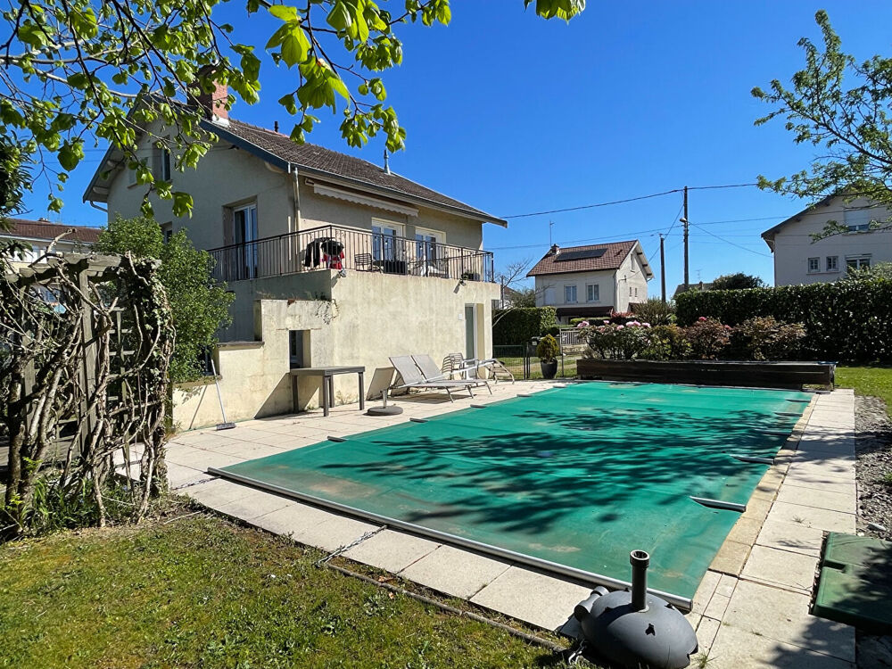 BOURG sud, maison des années 1950 composée d'une pièce de vie de 50 m² avec cuisine équipée offrant une triple exposition Est - Sud et Ouest, avec accès à une terrasse, 3 chambres + espace salle de jeux / bureau, 2 salles d'eau, 2 toilettes, un garage et une grande cave. La maison offre une surface habitable de 132 m² + un appartement T2 de 50 m² en rez-de-chaussée avec espace de terrasse / jardin. La maison est bâtie sur une parcelle de 1047 m² arborée, avec une belle piscine de 8m x 4m. Le chauffage central au gaz est complété par un poêle à granulés + des climatisations réversibles dans les chambres de l'étage. L'ensemble a été rénové et est en très bon état.Etat général : Bon Etat