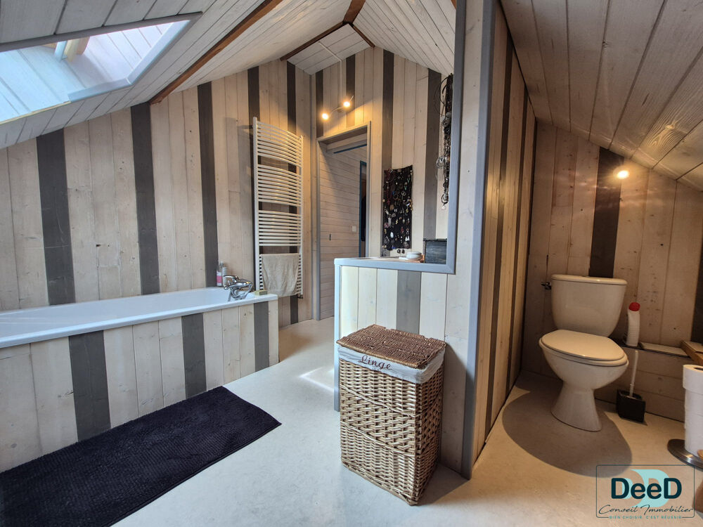 A l'étage, vous trouverez deux belles chambres offrant un cadre paisible, un bureau pouvant être un espace nuit complémentaire et une salle de bain avec un wc inclus.