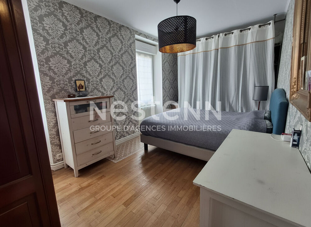 Idéalement située en plein centre du bourg d'Elven, cette maison atypique de 163 m² vous séduira par son emplacement privilégié : commerces, écoles et restaurants accessibles à pied, pour un quotidien pratique et agréable. Édifiée sur un terrain de 392 m², cette maison offre de beaux volumes et une distribution fonctionnelle. Dès l'entrée, vous découvrirez une grande cuisine entièrement neuve aménagée équipée, ouverte sur un salon séjour chaleureux, agrémenté d'un poêle à bois. Le rez-de-chaussée propose également une pièce supplémentaire pouvant faire office de chambre ou de bureau, avec à l'étage un second espace idéal pour le télétravail ou un coin détente. Au premier étage, vous trouverez trois grandes chambres lumineuses ainsi qu'une salle de bains. Le deuxième niveau accueille une belle mezzanine, offrant un espace de vie supplémentaire, ainsi qu'une chambre complémentaire. Côté prestations, la maison dispose d'un garage avec porte motorisée, de la fibre optique, d'un raccordement au tout-à-l'égout ainsi que d'un chauffage par radiateurs au gaz de ville. A l'extérieur, vous profiterez d'un agréable jardin arboré, véritable havre de paix au calme, tout en étant au coeur de la vie du bourg. Une maison pleine de charme et de potentiel, idéale pour une famille à la recherche d'un cadre de vie alliant confort, espace et proximité des commodités. Uniquement chez Nestenn Elven ! (5.00 % honoraires TTC à la charge de l'acquéreur.)Etat général : Bon Etat