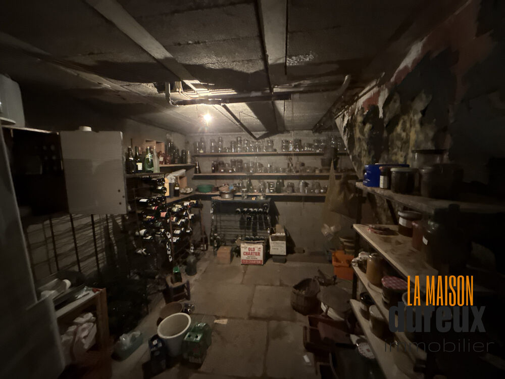 Sous-sol avec garage pouvant accueillir deux véhicules, une cave, un atelier ainsi que plusieurs espaces de stockage.