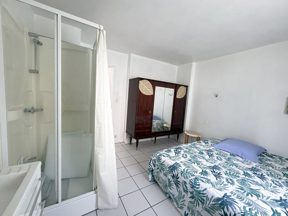 - Une chambre avec douche et lavabo.