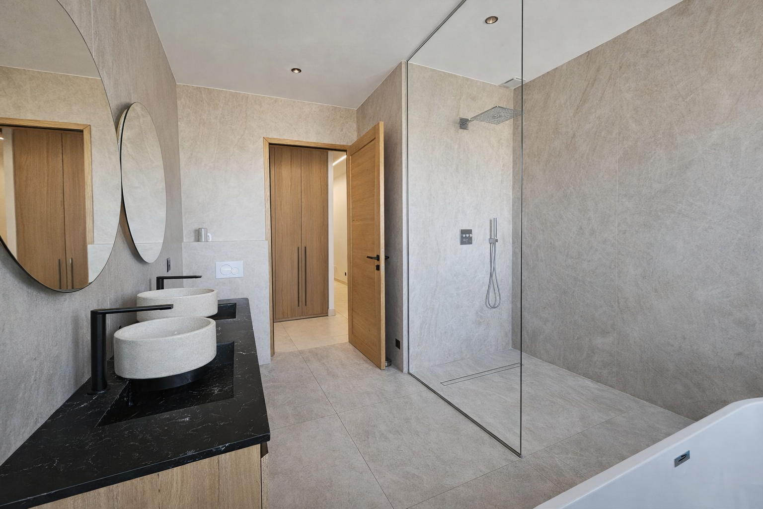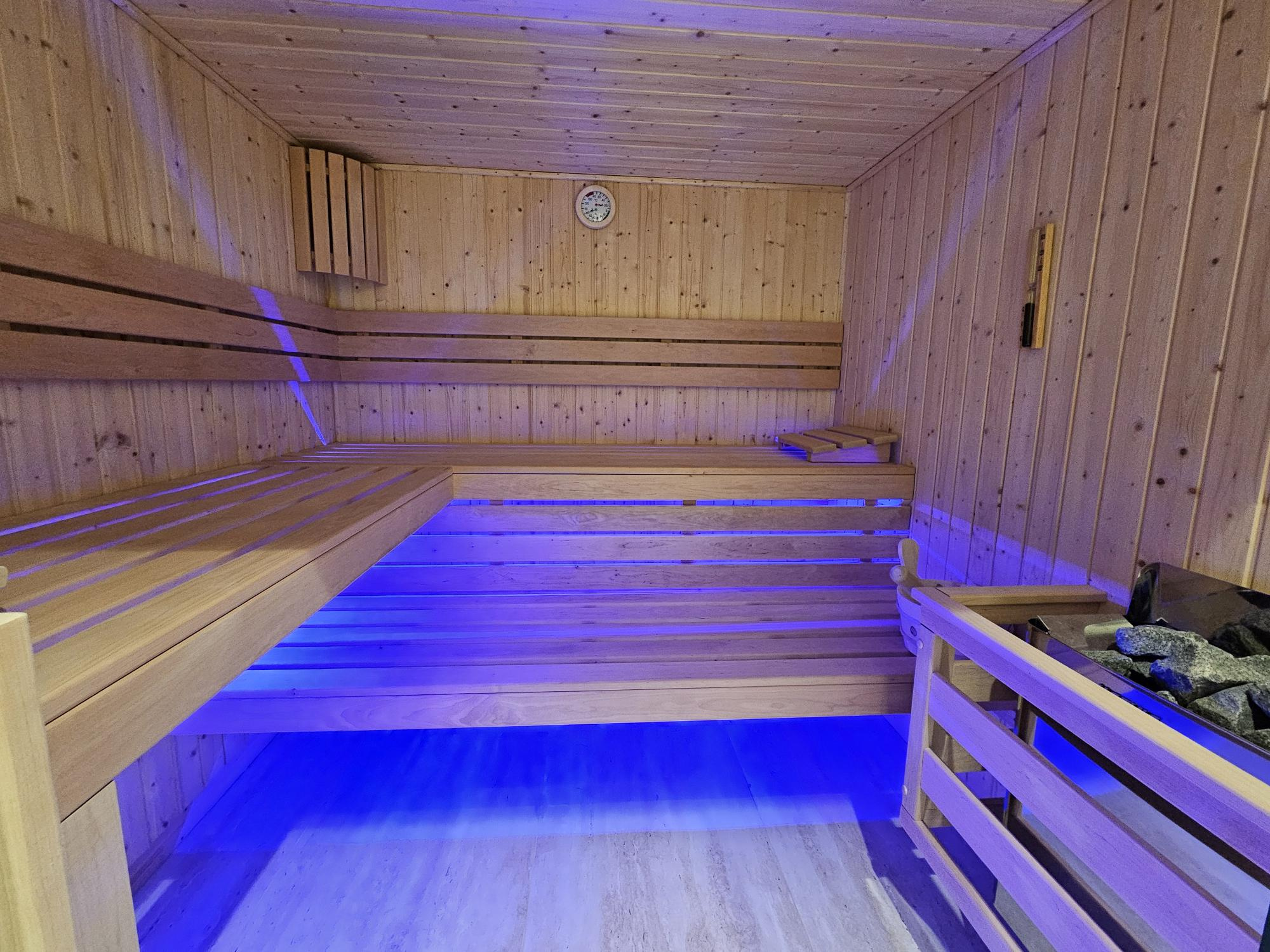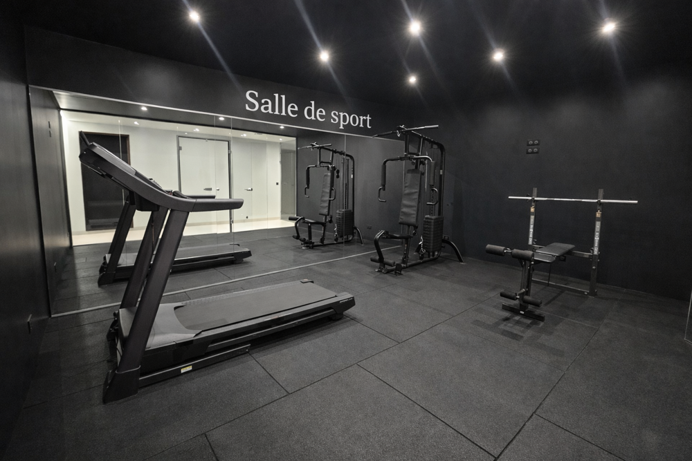 Pour votre confort vous profiterez également d'une buanderie de 26m2, d'un 2ème salon de 46m2, d'une pièce cinéma de 25m2, d'une salle de sport de 22m2, d'un espace détente de 56m2 équipé d'un sauna, hammam, possibilité d'installer également un jacccuzzi , douche et toilettes.