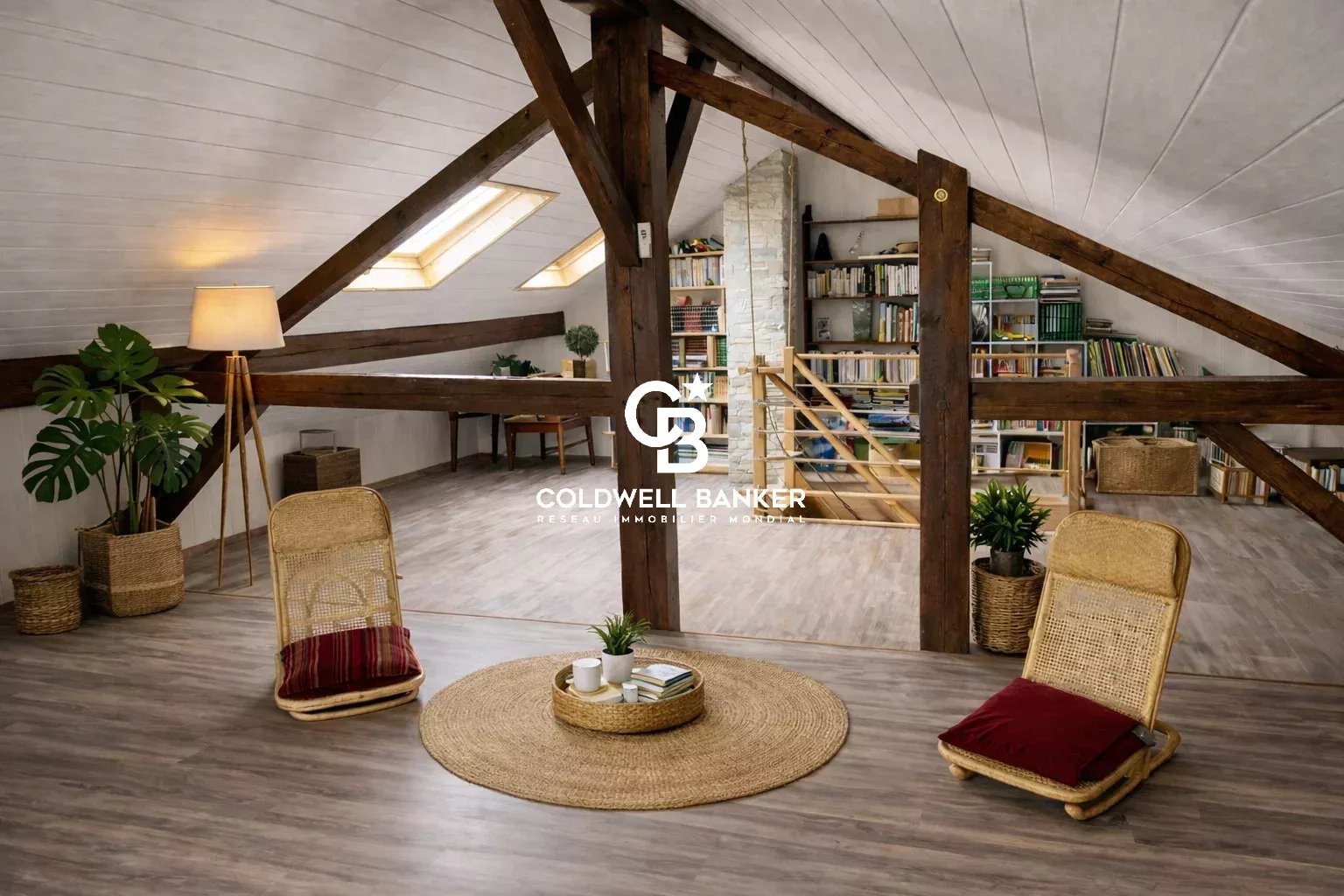On y retrouve une mezzanine ainsi qu'un espace sous les toits, offrant un volume supplémentaire intéressant.